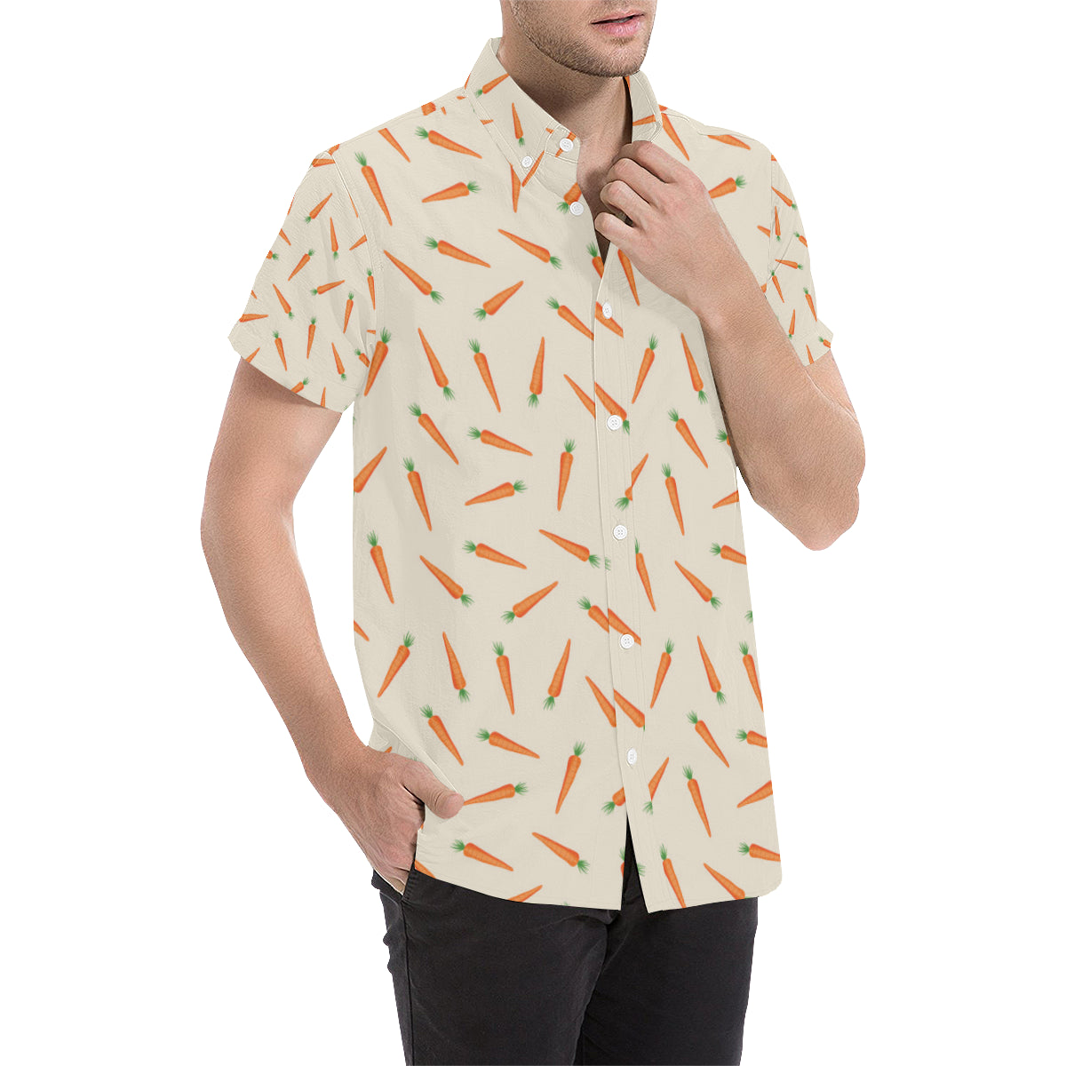 Carrot Pattern Print Design 07 Men's Short Sleeve Button Up Shirt Made to Order Item. It is hand-cut and sewn just for your order! This process starts as soon as your order is placed and may have a processing time of 5-9 business days before it ships.