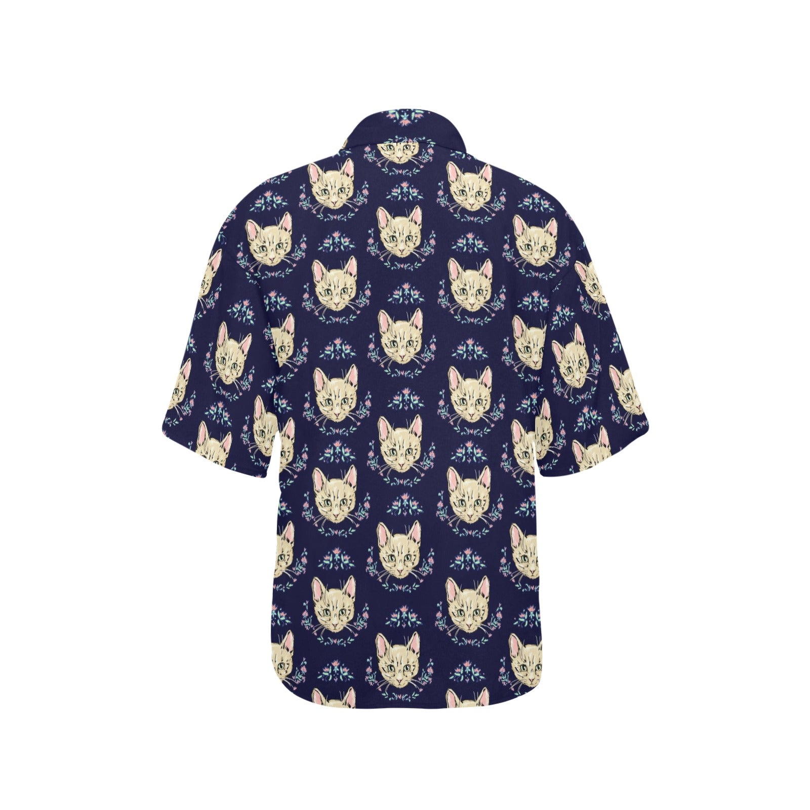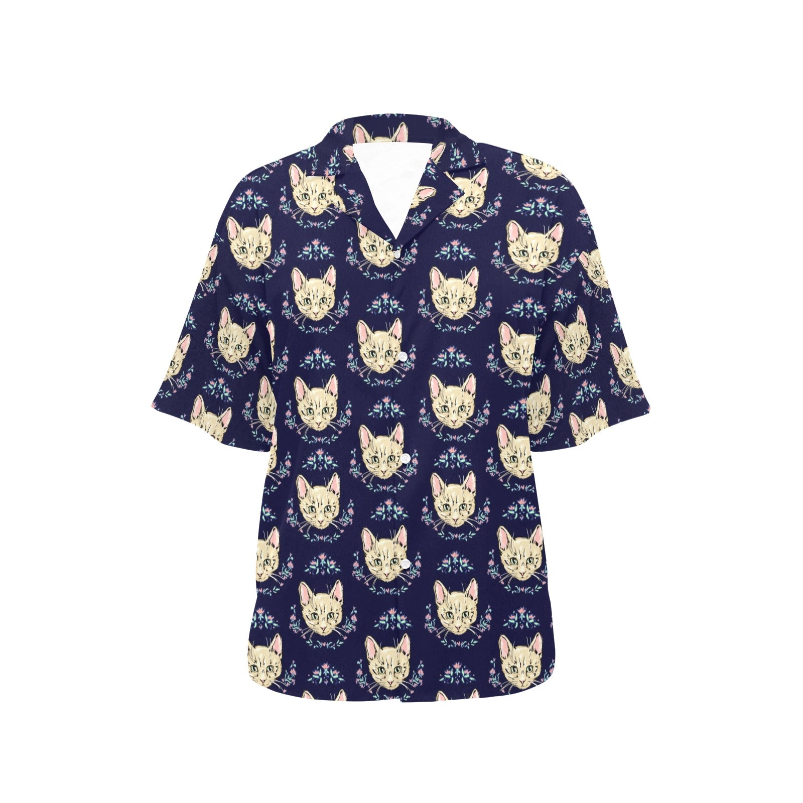Cat Head with flower Print Pattern Women's Hawaiian Shirt