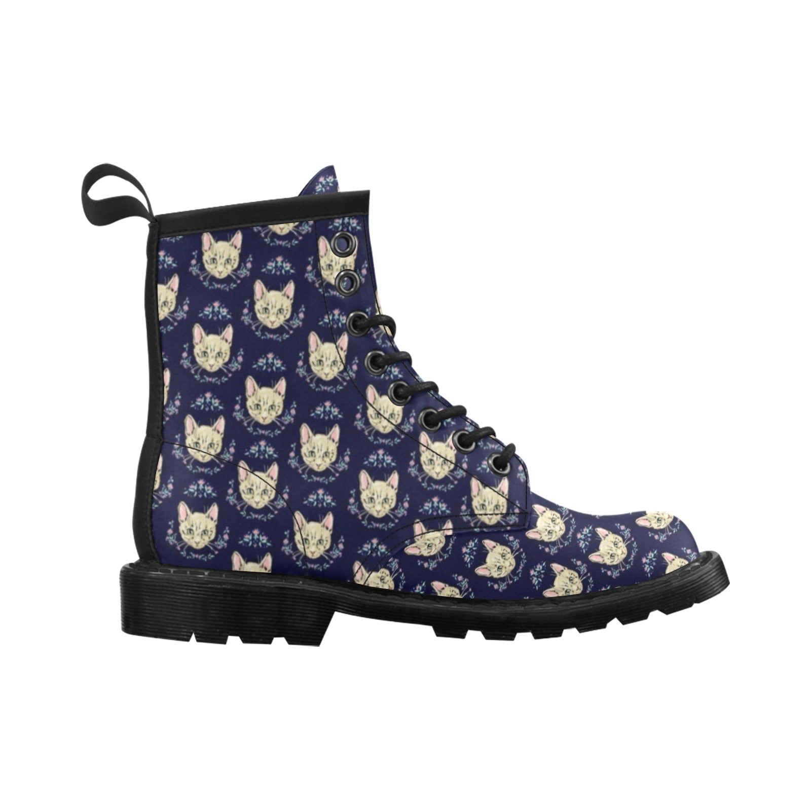 Cat Head with flower Print Pattern Women's Boots Made to Order Item. It is hand-cut and sewn just for your order! This process starts as soon as your order is placed and may have a processing time of 5-9 business days before it ships.
