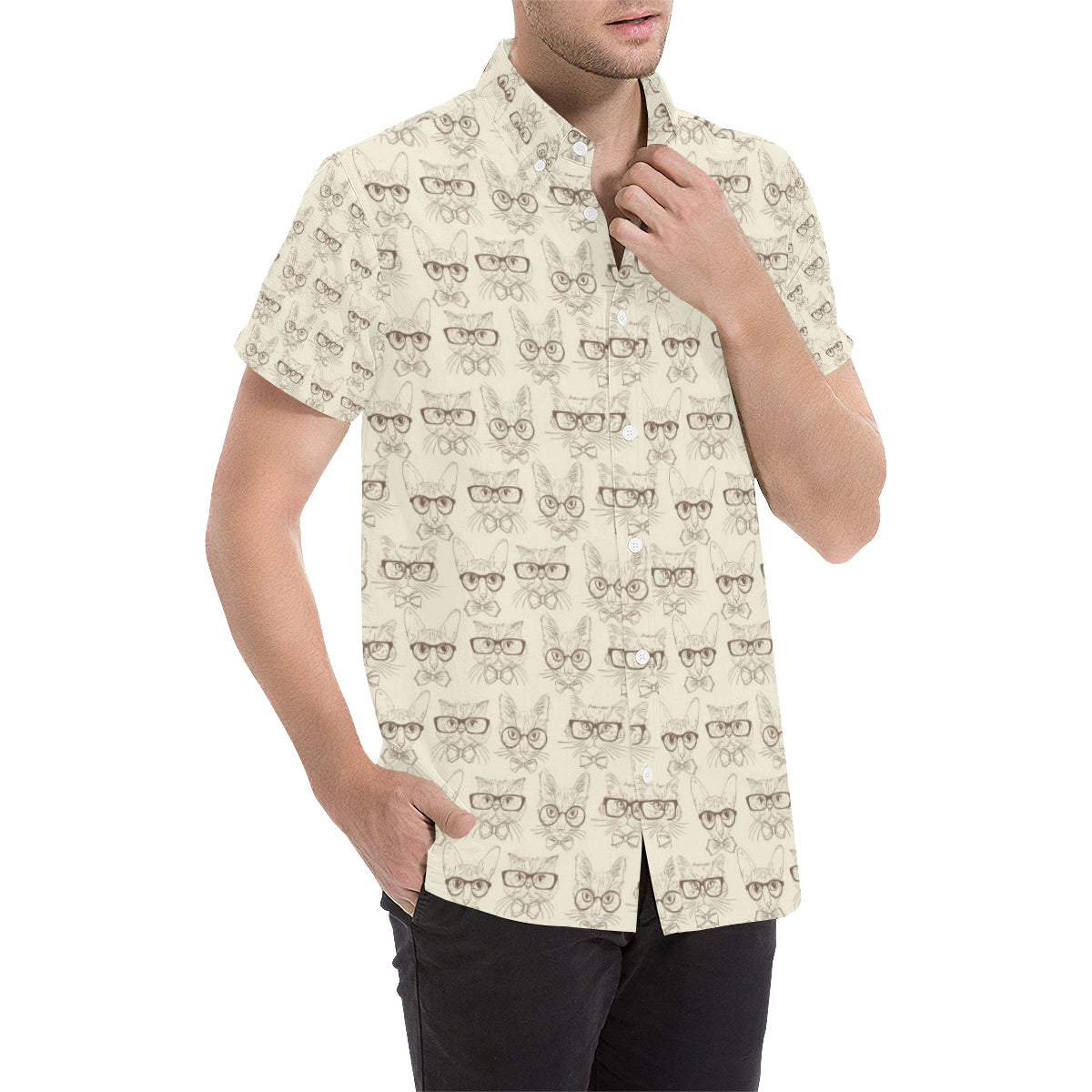 Cat Pattern Print Design 02 Men's Short Sleeve Button Up Shirt
