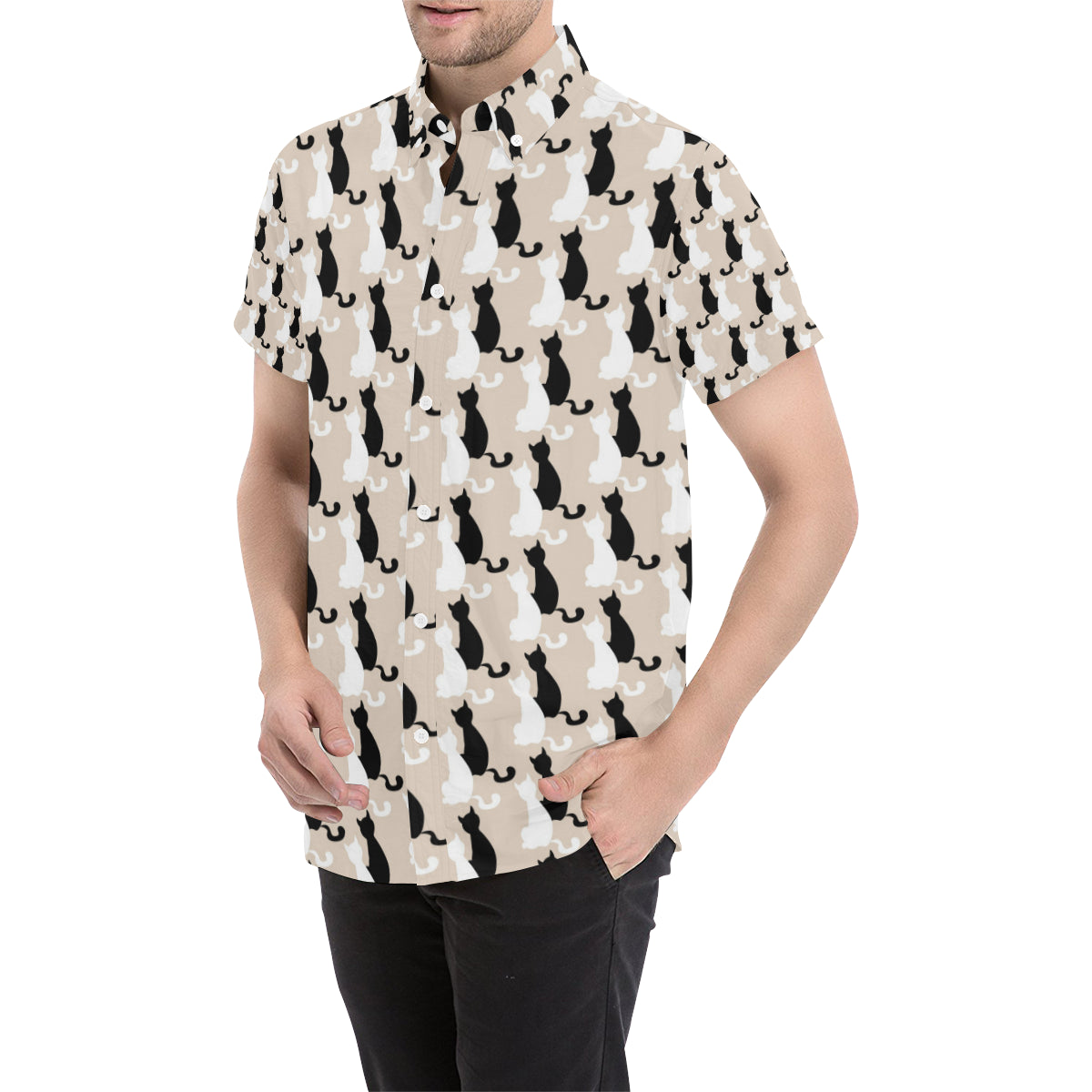 Cat Pattern Print Design 04 Men's Short Sleeve Button Up Shirt Made to Order Item. It is hand-cut and sewn just for your order! This process starts as soon as your order is placed and may have a processing time of 5-9 business days before it ships.