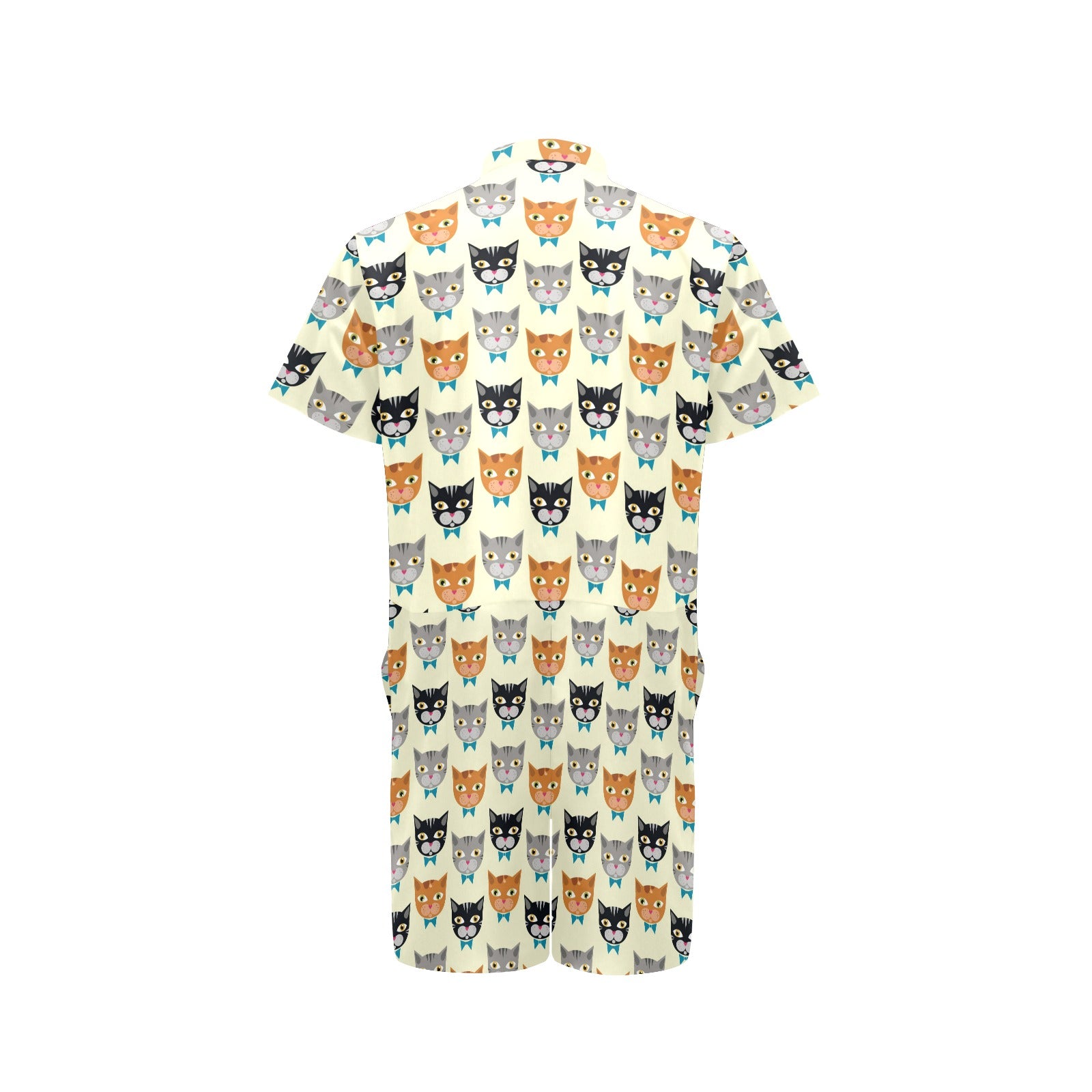 Cat Pattern Print Design 05 Men's Romper Made to Order Item. It is hand-cut and sewn just for your order! This process starts as soon as your order is placed and may have a processing time of 5-9 business days before it ships.