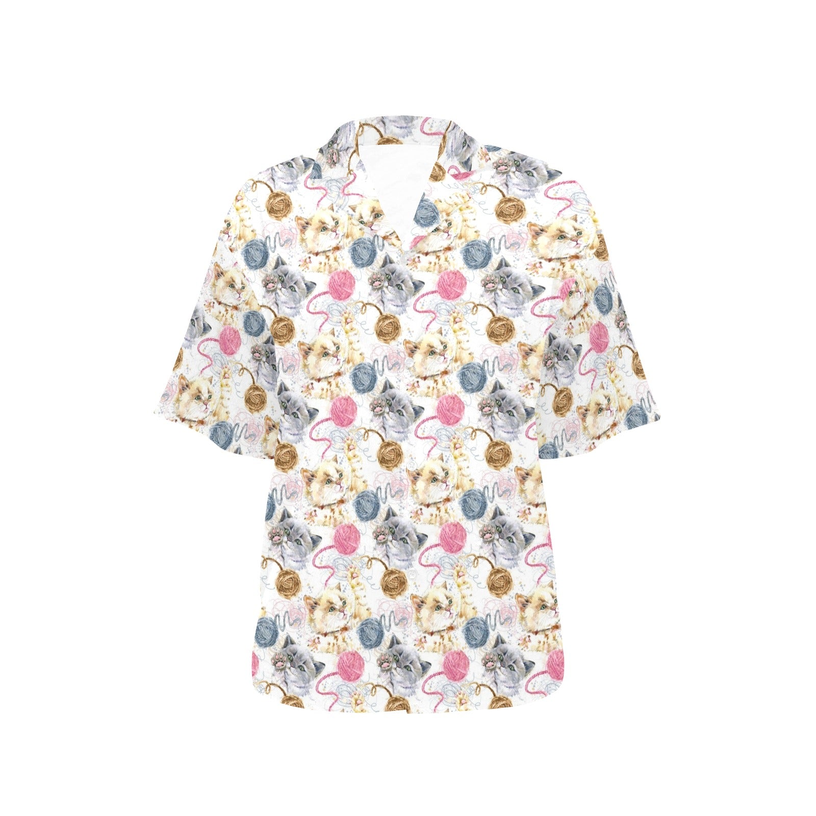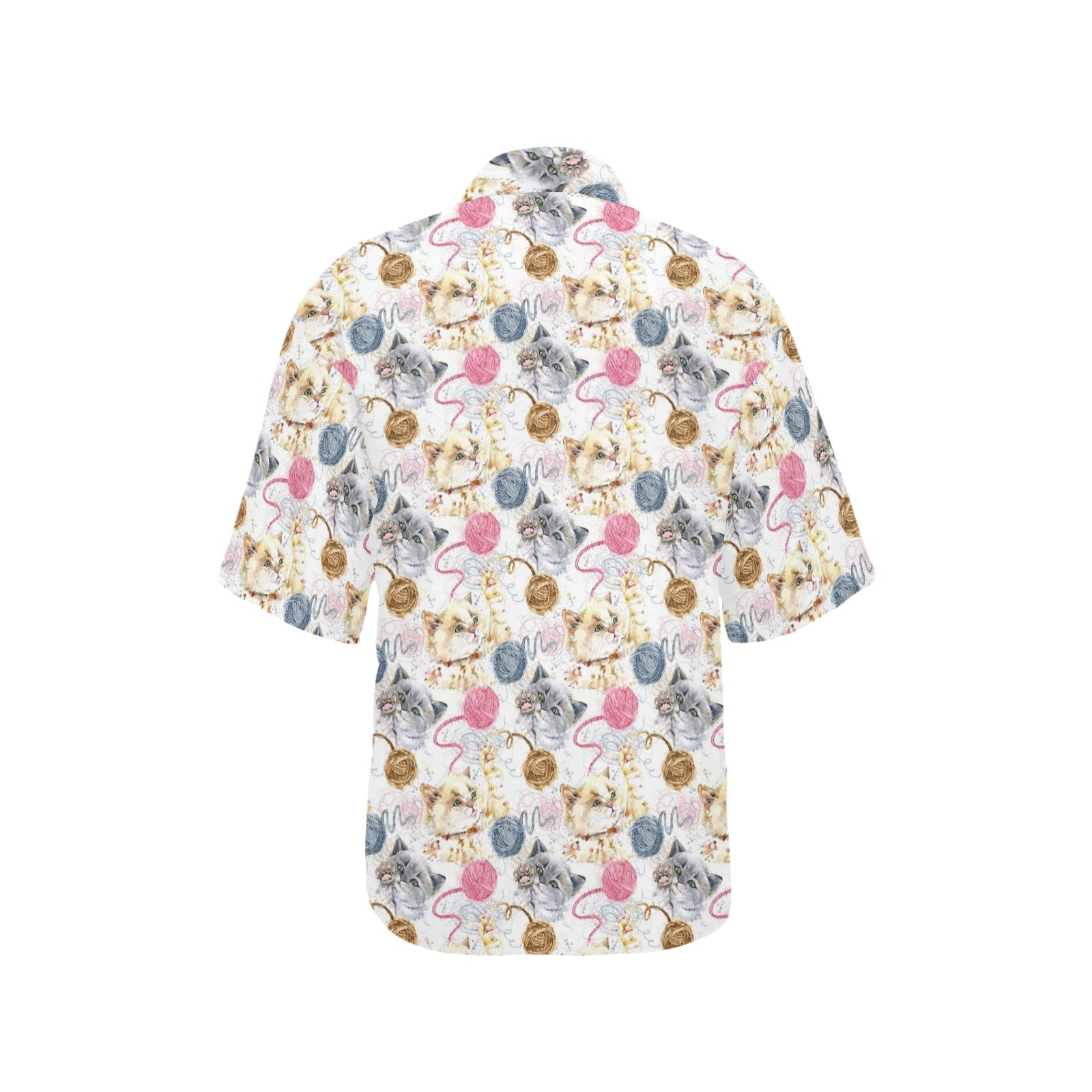Cat Playing Yarn Pattern Print Design 07 Women's Hawaiian Shirt