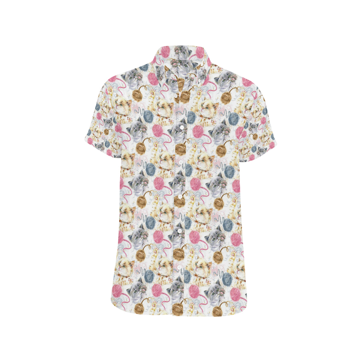Cat Playing Yarn Pattern Print Design 07 Men's Short Sleeve Button Up Shirt Made to Order Item. It is hand-cut and sewn just for your order! This process starts as soon as your order is placed and may have a processing time of 5-9 business days before it ships.