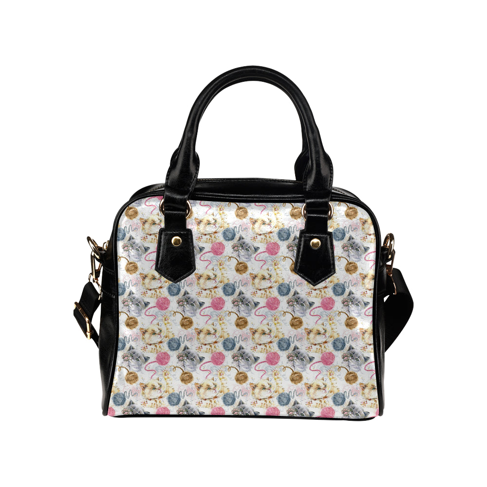 Cat Playing Yarn Pattern Print Design 07 Shoulder Handbag