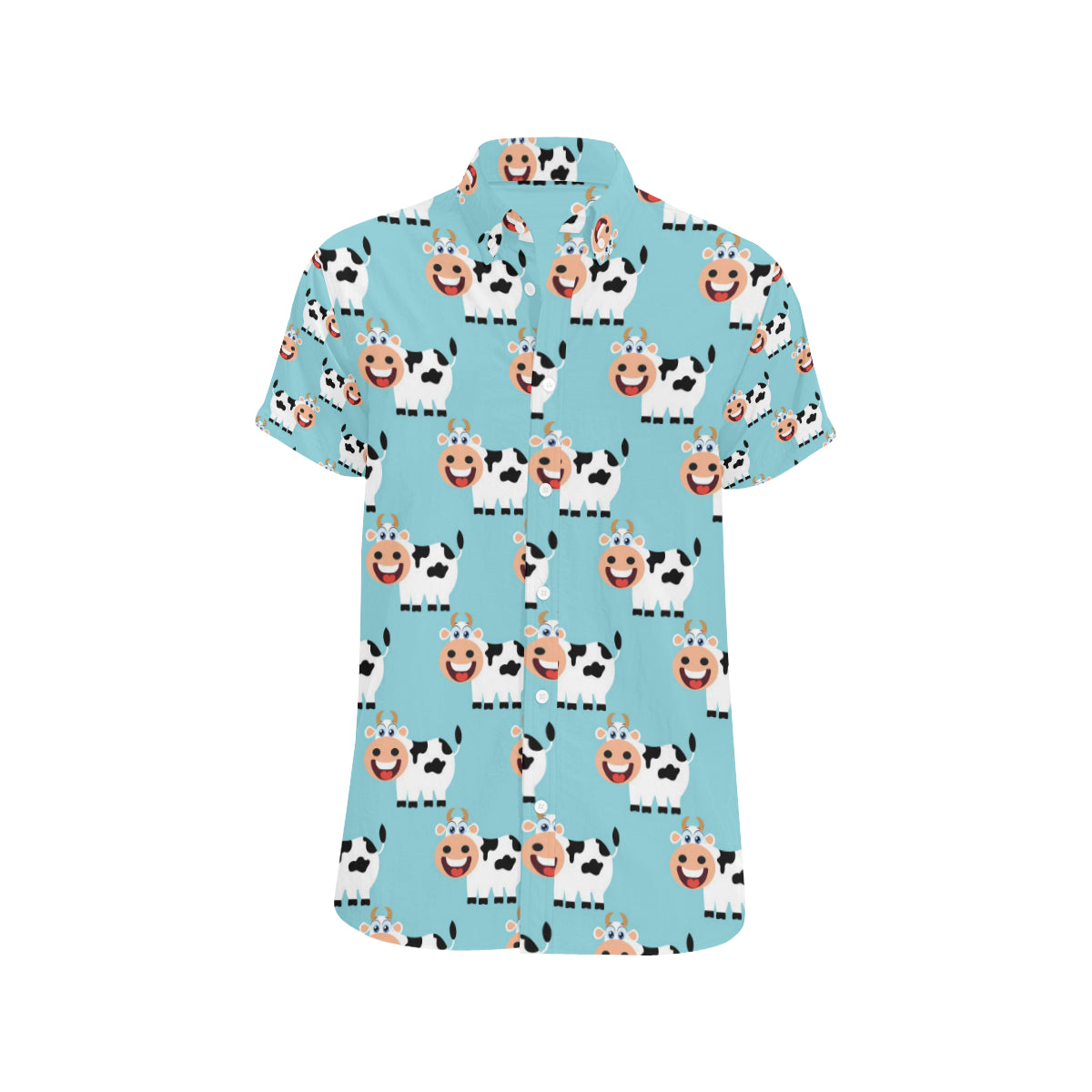 Cattle Cute Pattern Print Design 01 Men's Short Sleeve Button Up Shirt Made to Order Item. It is hand-cut and sewn just for your order! This process starts as soon as your order is placed and may have a processing time of 5-9 business days before it ships.