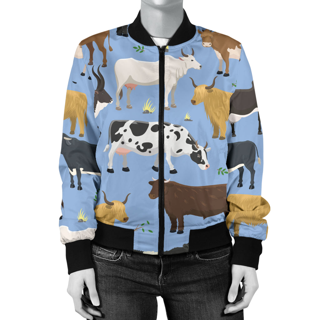 Cattle Pattern Print Design 02 Women's Bomber Jacket