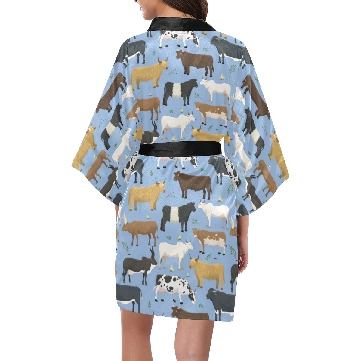 Cattle Pattern Print Design 02 Women's Short Kimono Made to Order Item. It is hand-cut and sewn just for your order! This process starts as soon as your order is placed and may have a processing time of 5-9 business days before it ships.