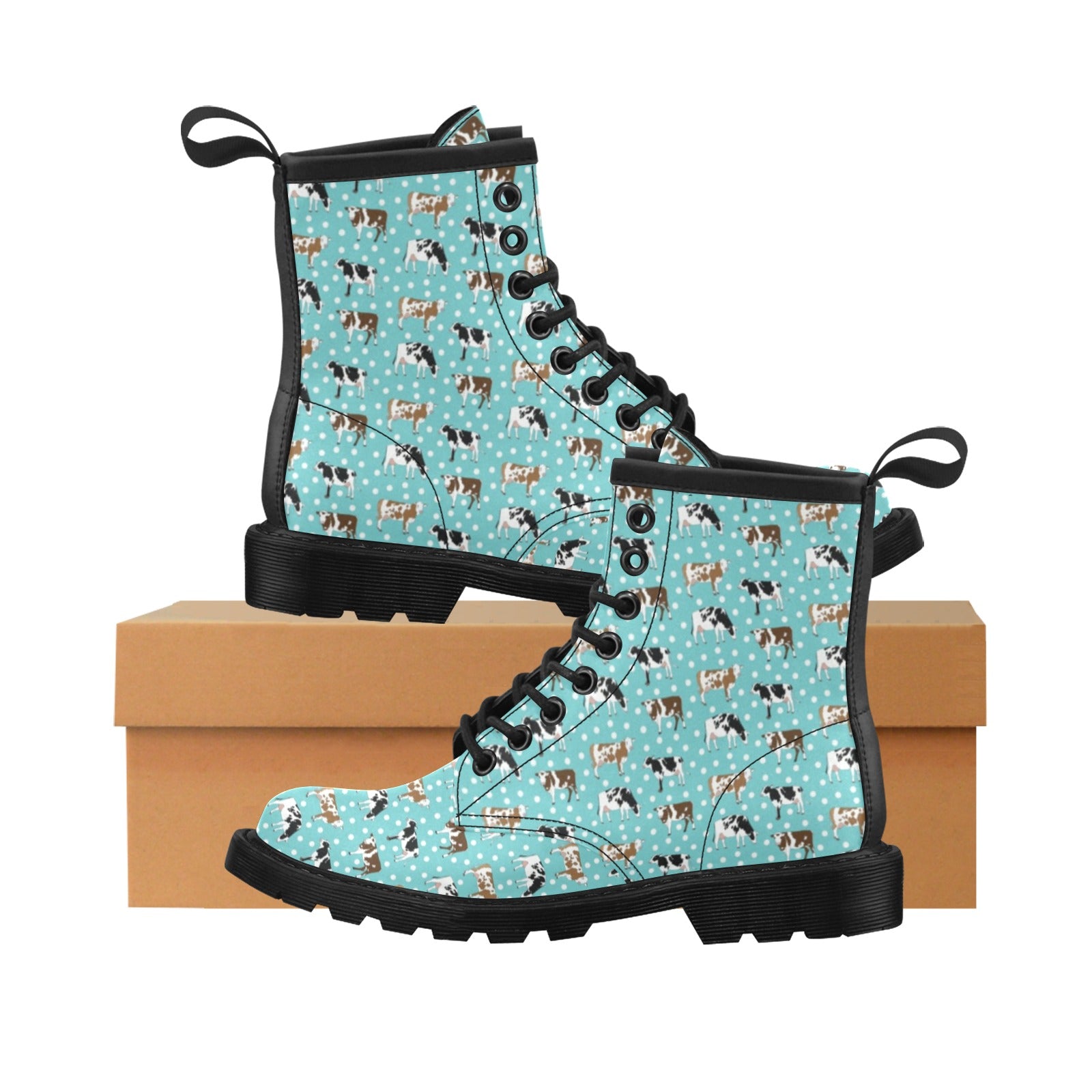 Cattle Print Design LKS405 Women's Boots Made to Order Item. It is hand-cut and sewn just for your order! This process starts as soon as your order is placed and may have a processing time of 5-9 business days before it ships.