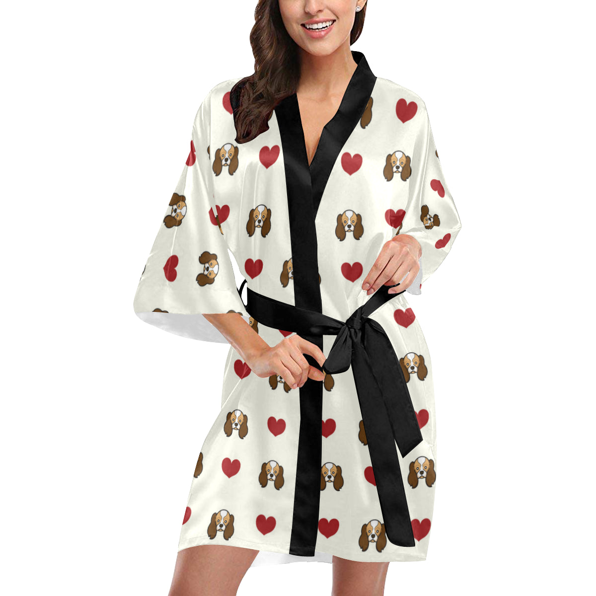 Cavalier King Charles Spaniels Pattern Print Desig Women's Short Kimono Made to Order Item. It is hand-cut and sewn just for your order! This process starts as soon as your order is placed and may have a processing time of 5-9 business days before it ships.