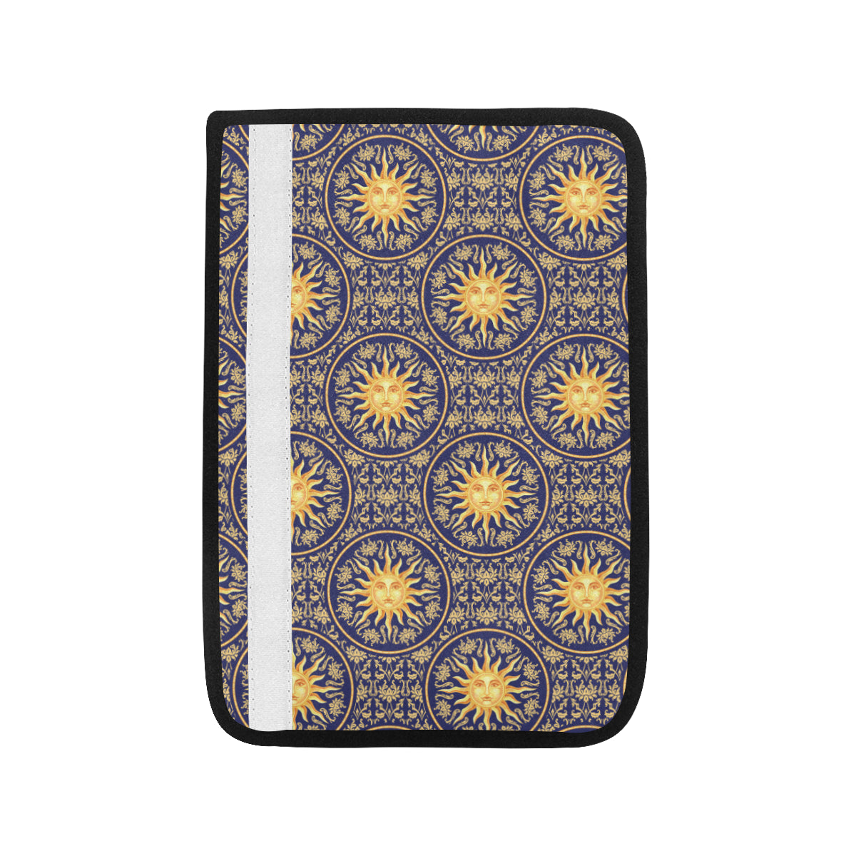 Celestial Gold Sun Face Car Seat Belt Cover Made to Order Item. It is hand-cut and sewn just for your order! This process starts as soon as your order is placed and may have a processing time of 5-9 business days before it ships.