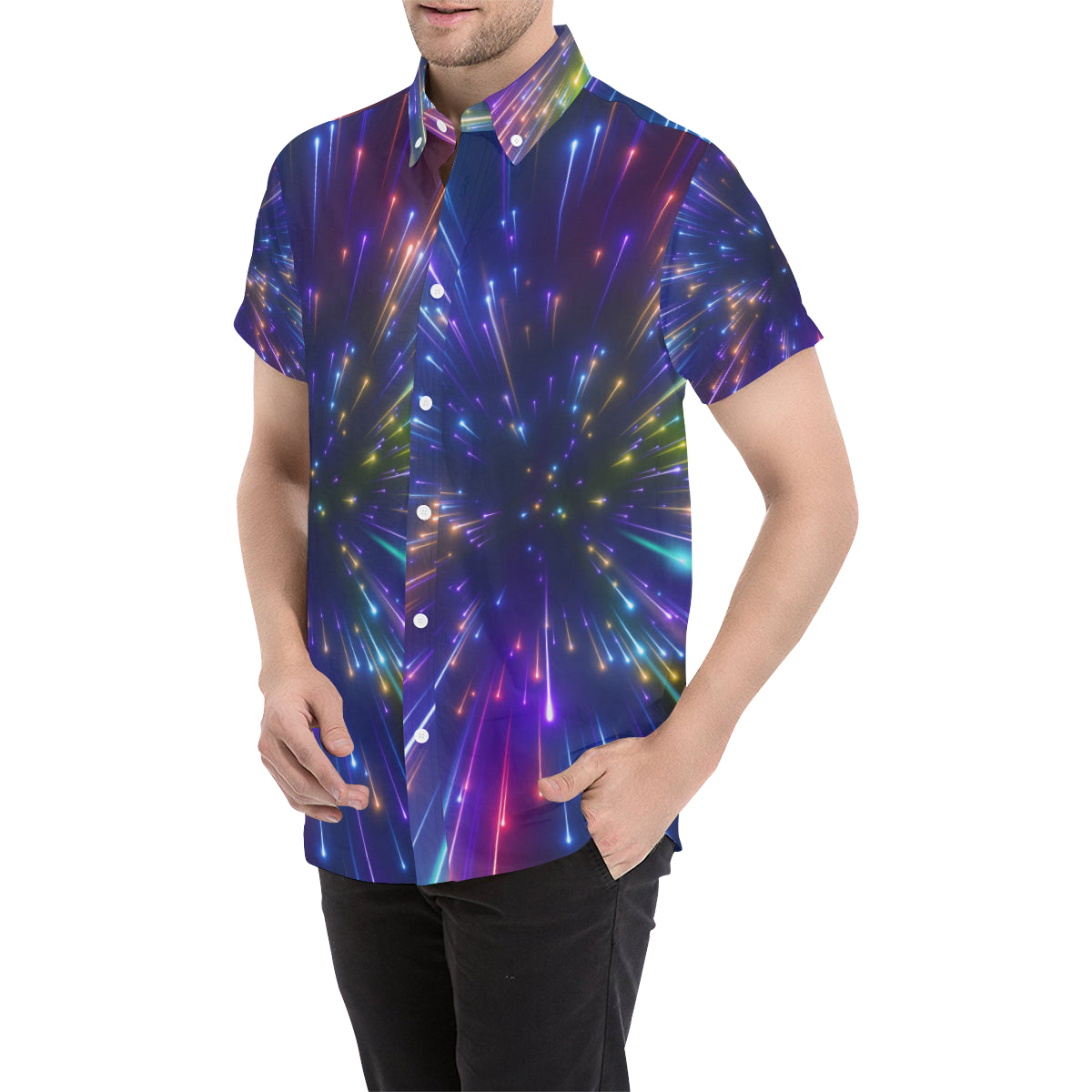 Celestial Rainbow Speed Light Men's Short Sleeve Button Up Shirt