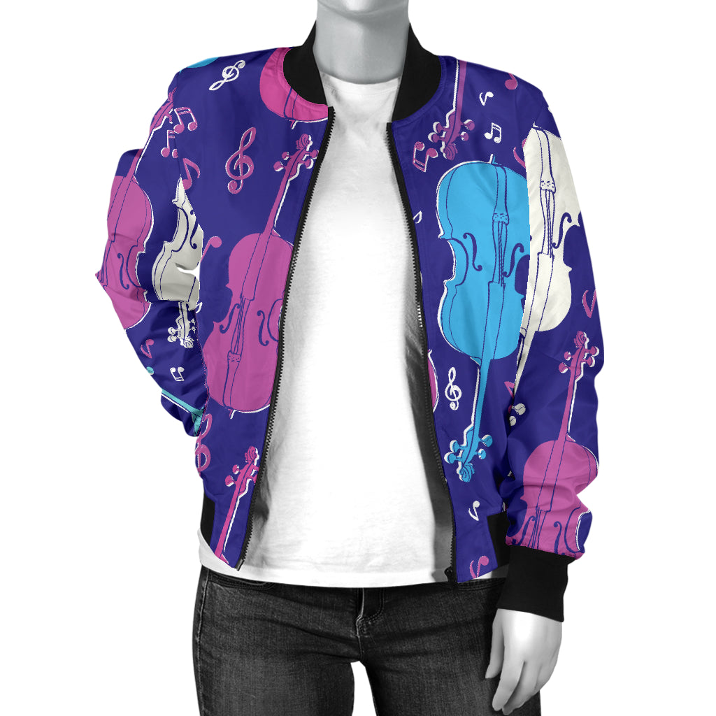 Cello Pattern Print Design 01 Women's Bomber Jacket