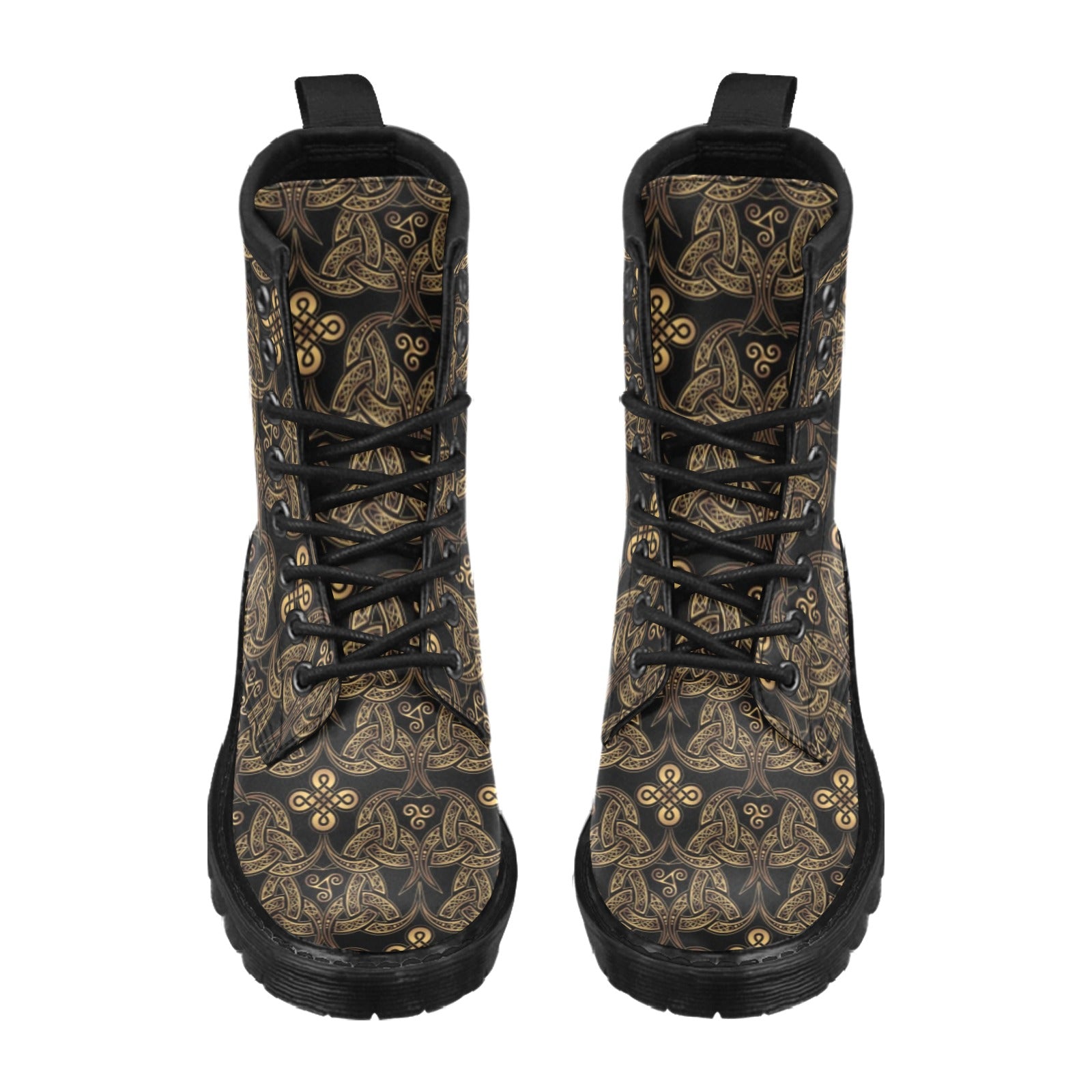 Celtic Knot Gold Design Women's Boots Made to Order Item. It is hand-cut and sewn just for your order! This process starts as soon as your order is placed and may have a processing time of 5-9 business days before it ships.