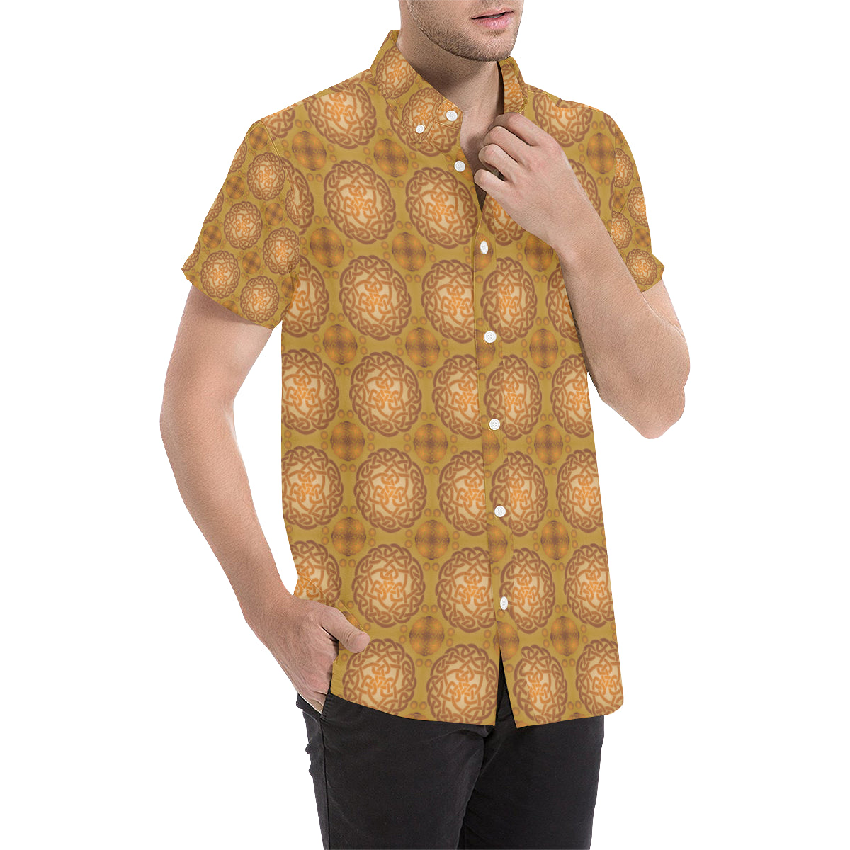 Celtic Pattern Print Design 01 Men's Short Sleeve Button Up Shirt Made to Order Item. It is hand-cut and sewn just for your order! This process starts as soon as your order is placed and may have a processing time of 5-9 business days before it ships.
