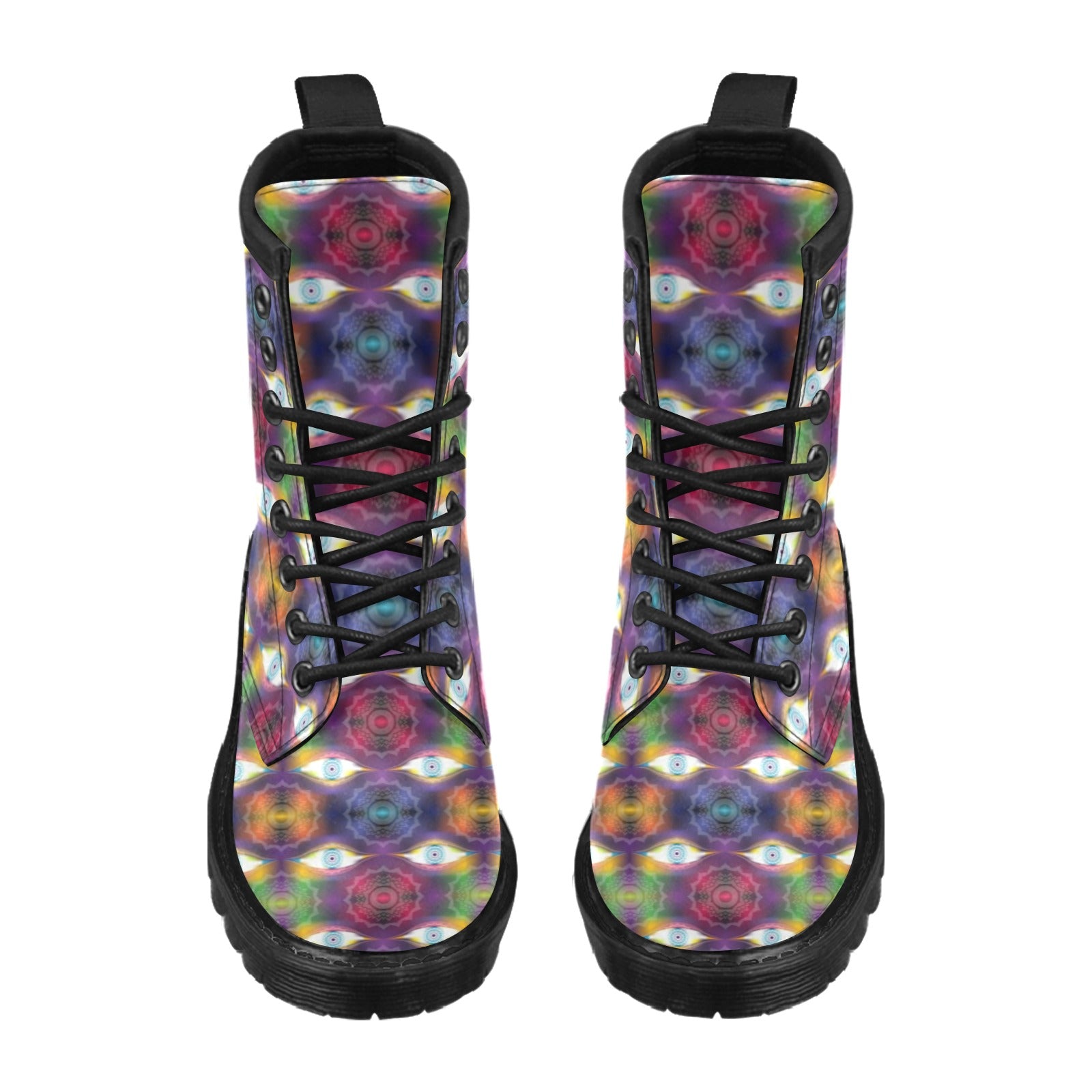 Chakra Eye Print Pattern Women's Boots Made to Order Item. It is hand-cut and sewn just for your order! This process starts as soon as your order is placed and may have a processing time of 5-9 business days before it ships.