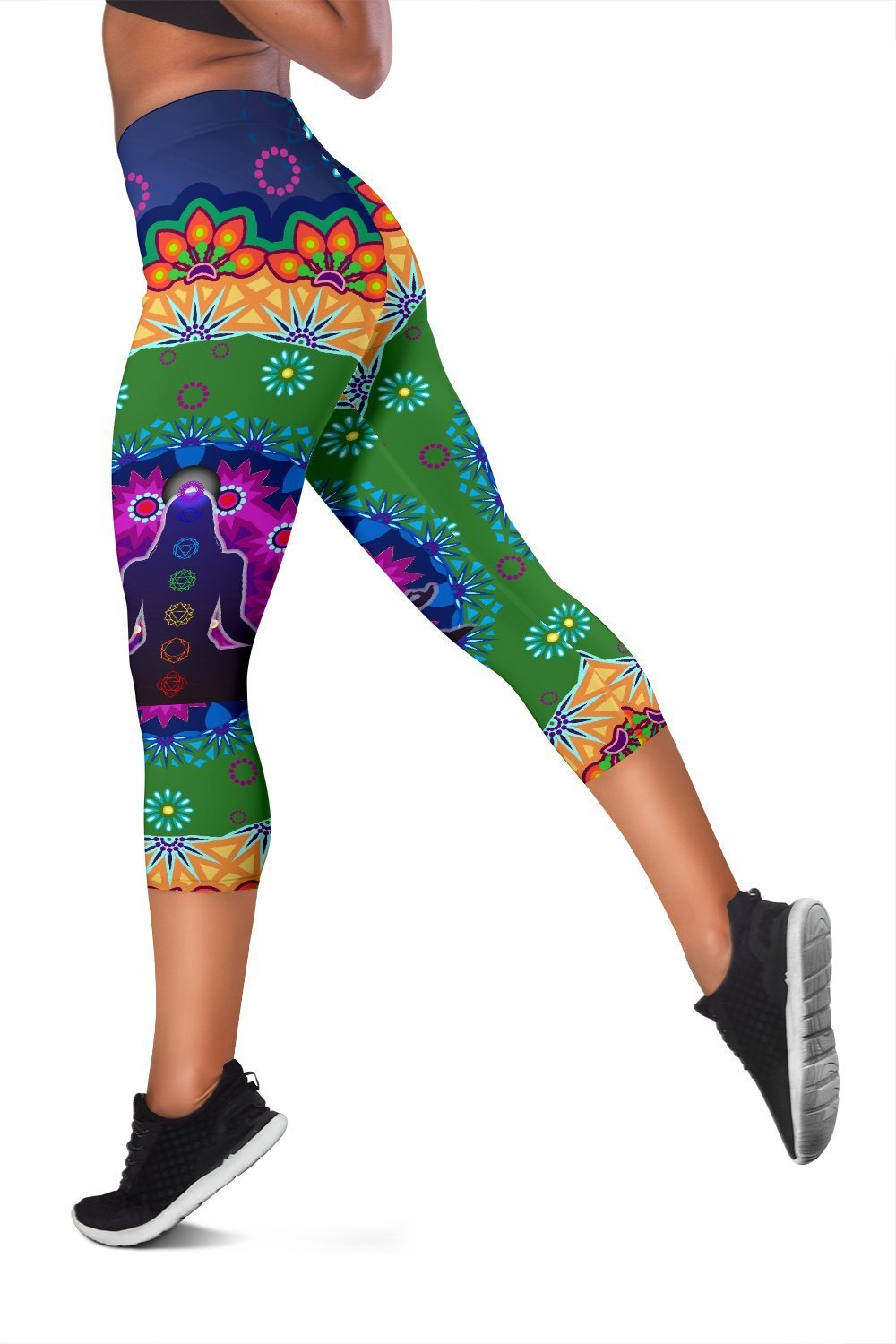 Chakra Zen Yoga Women Capris, This is a Unique Design and Made to Order Item. Hand printed, pressed and sewn with love in our factory just for your order!