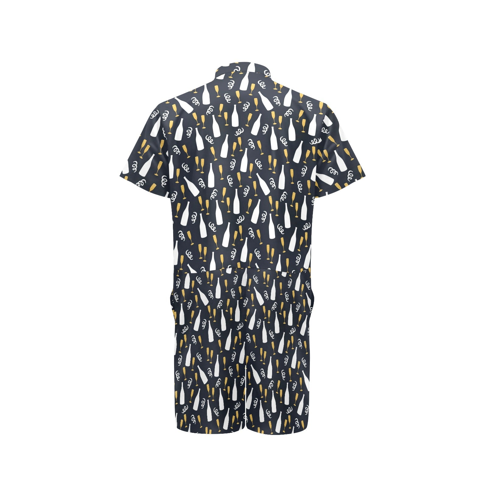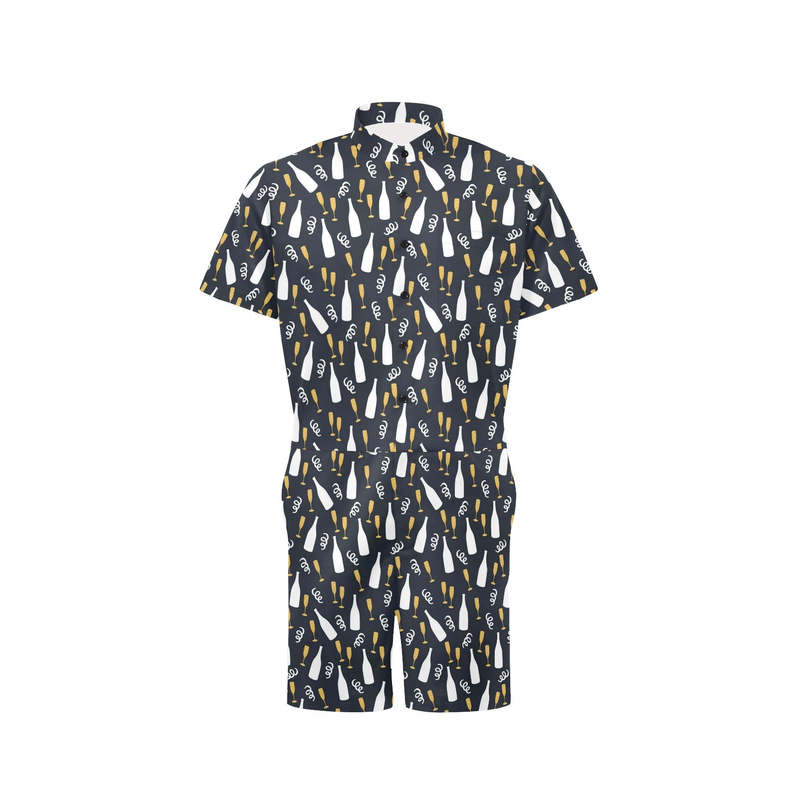 Champagne Pattern Print Design 01 Men's Romper Made to Order Item. It is hand-cut and sewn just for your order! This process starts as soon as your order is placed and may have a processing time of 5-9 business days before it ships.