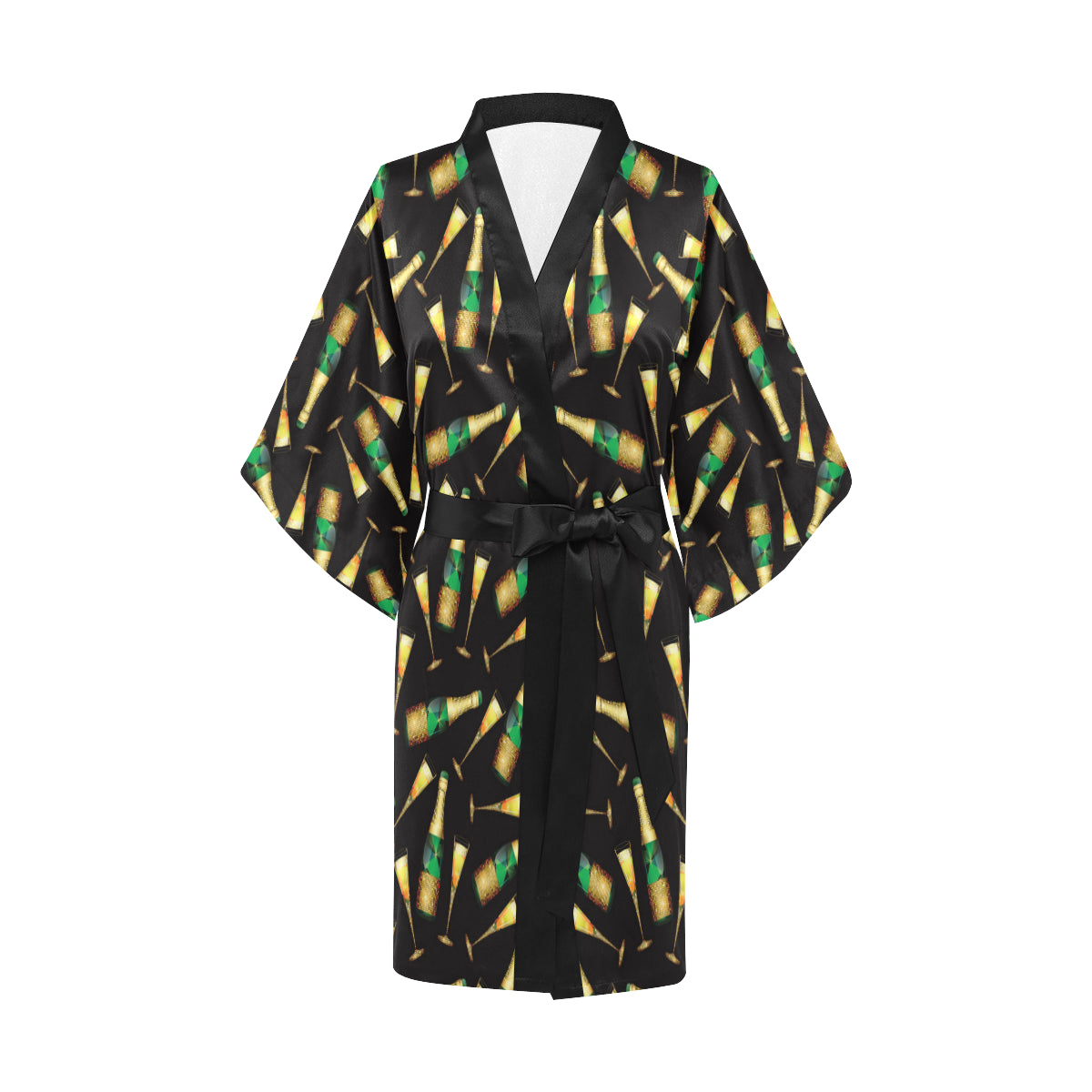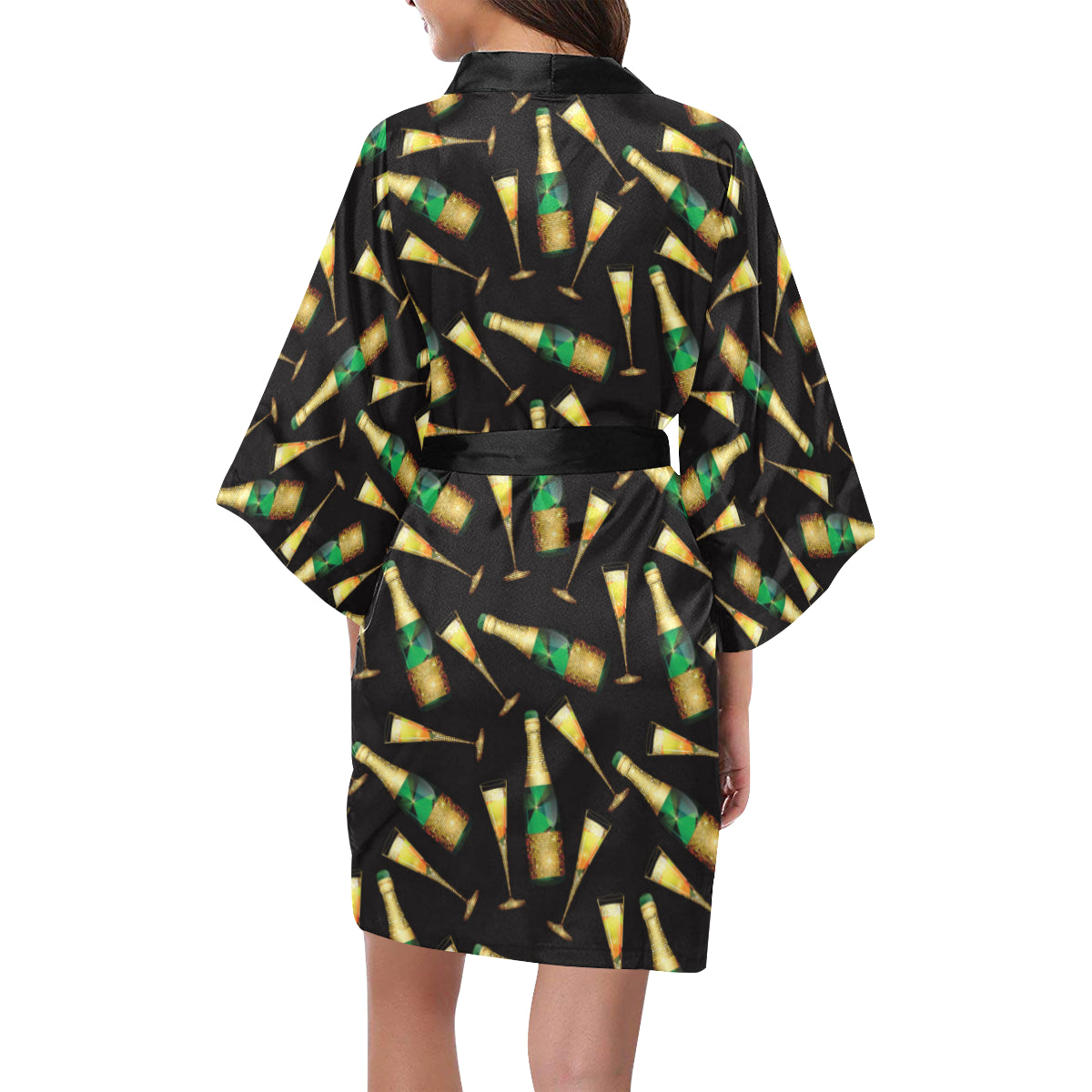 Champagne Pattern Print Design 02 Women's Short Kimono Made to Order Item. It is hand-cut and sewn just for your order! This process starts as soon as your order is placed and may have a processing time of 5-9 business days before it ships.