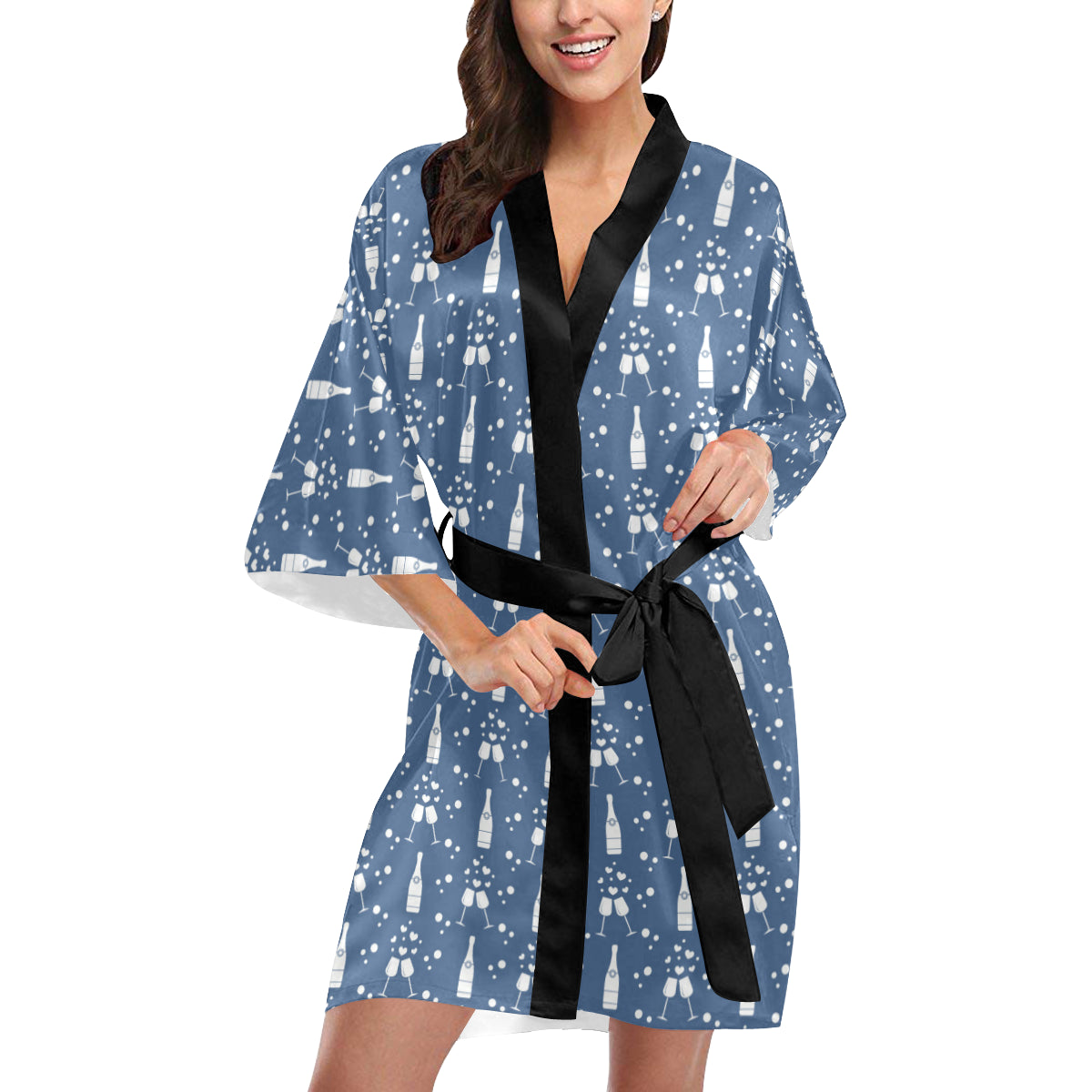 Champagne Pattern Print Design 05 Women's Short Kimono Made to Order Item. It is hand-cut and sewn just for your order! This process starts as soon as your order is placed and may have a processing time of 5-9 business days before it ships.