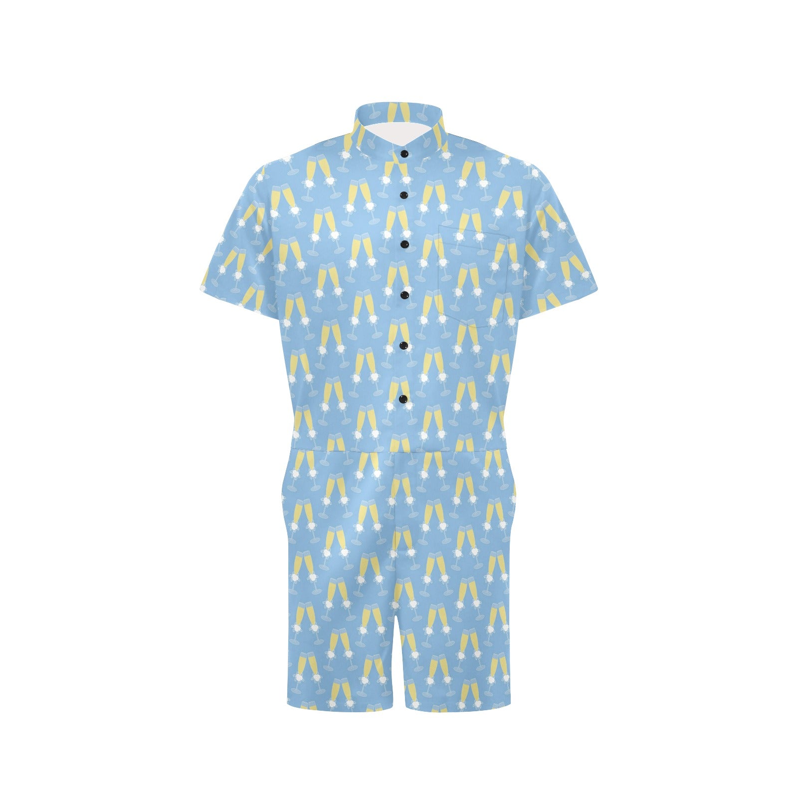 Champagne Pattern Print Design 06 Men's Romper Made to Order Item. It is hand-cut and sewn just for your order! This process starts as soon as your order is placed and may have a processing time of 5-9 business days before it ships.