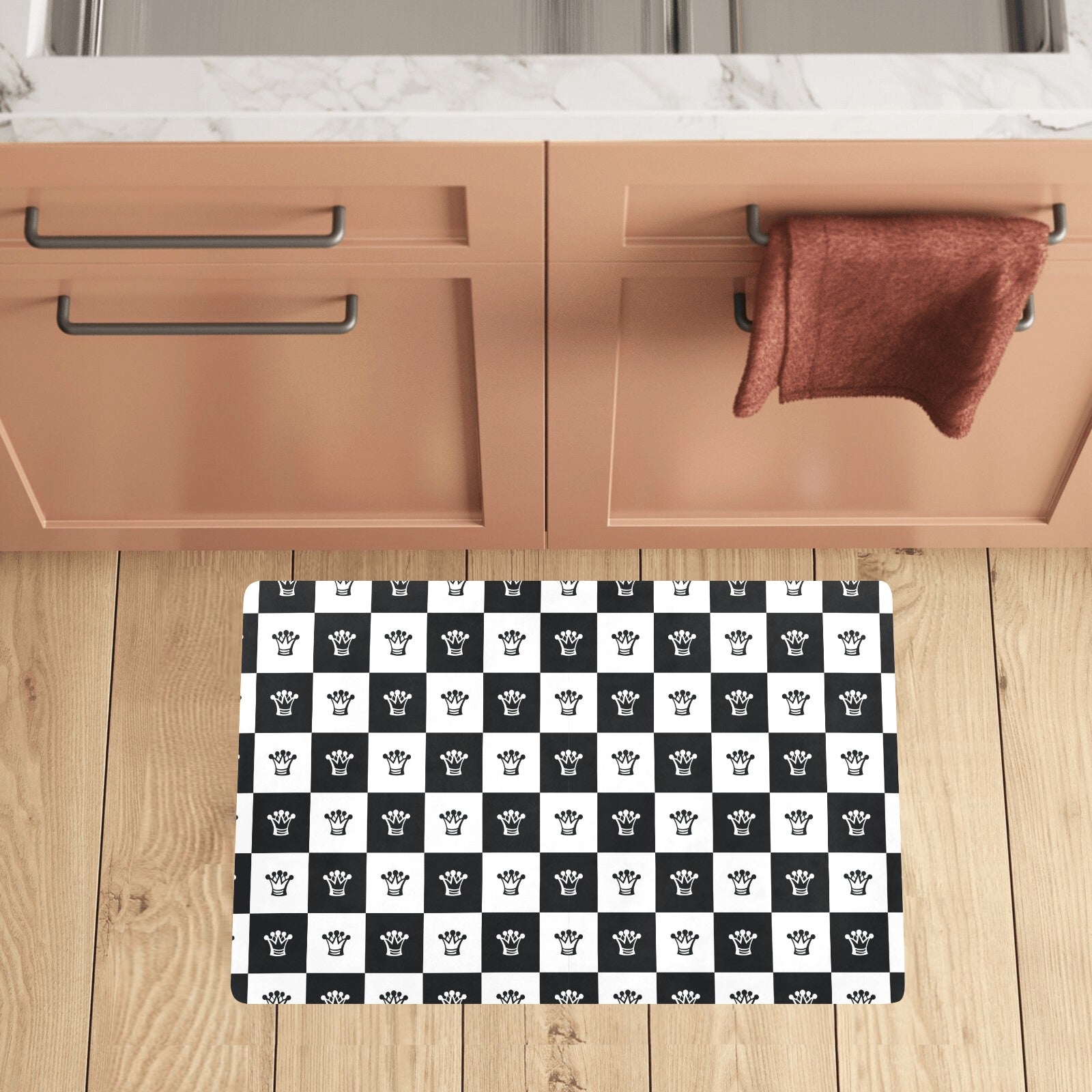 Checkered Flag Crown Pattern Kitchen Mat
