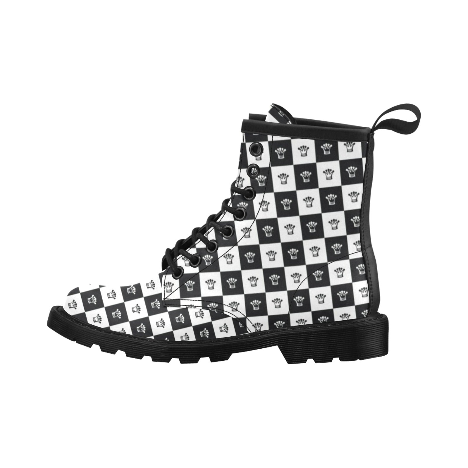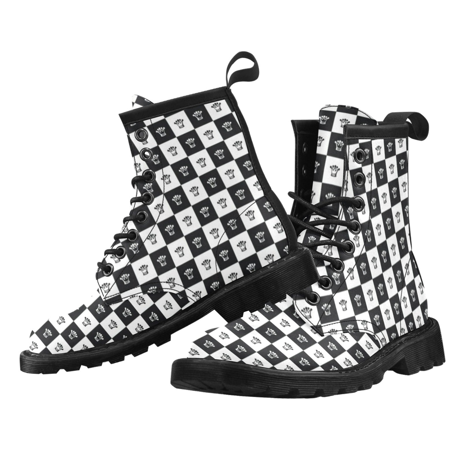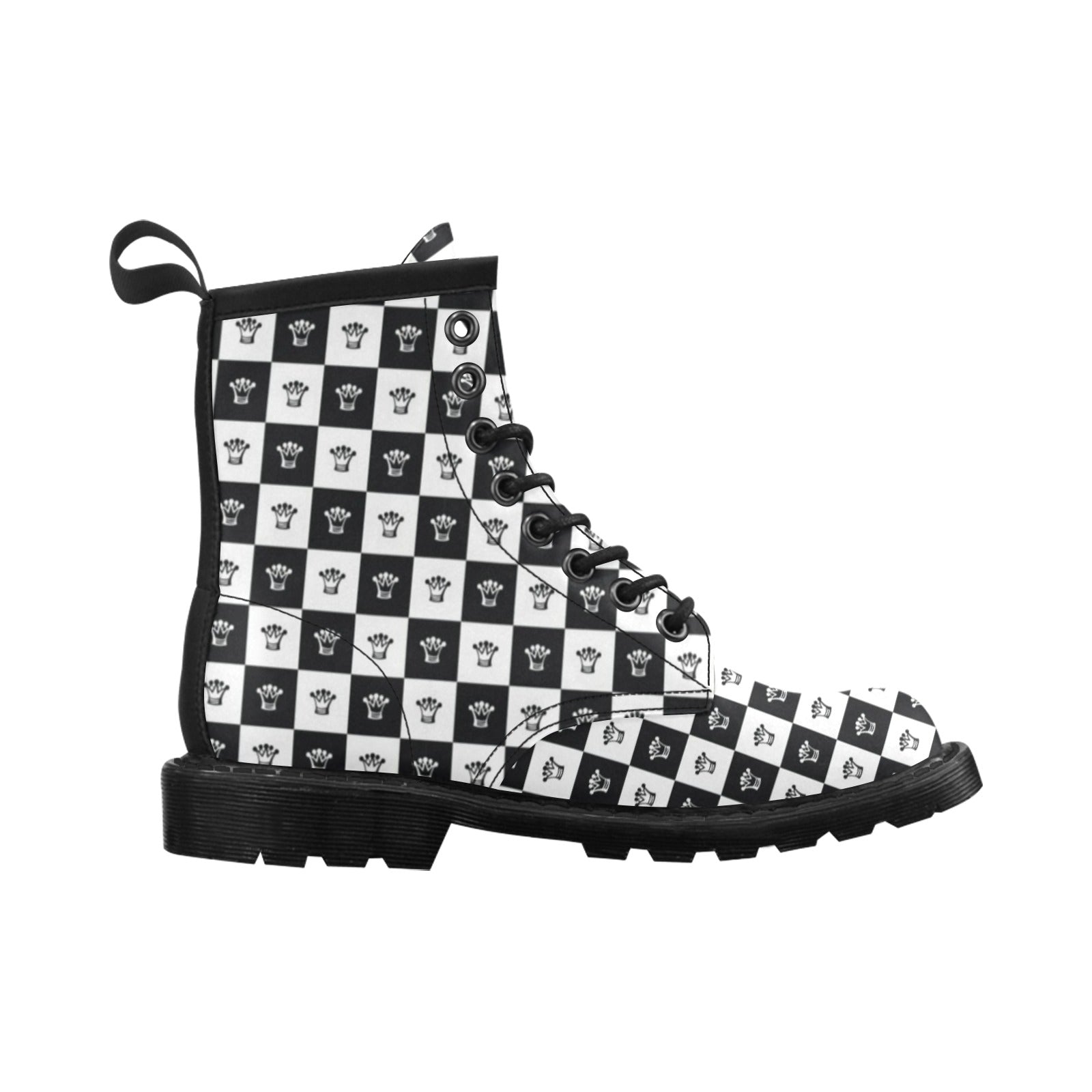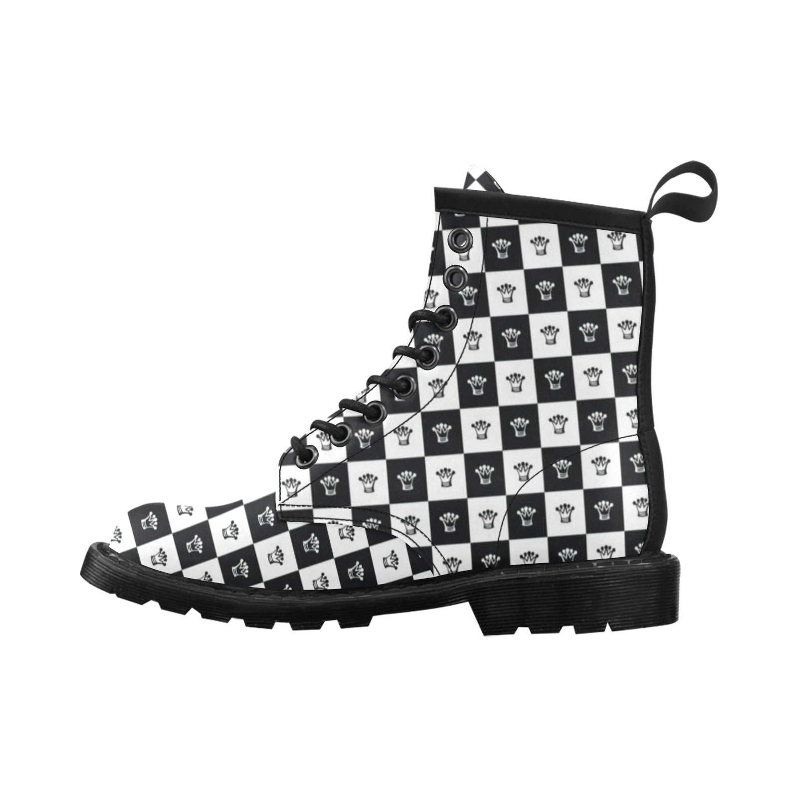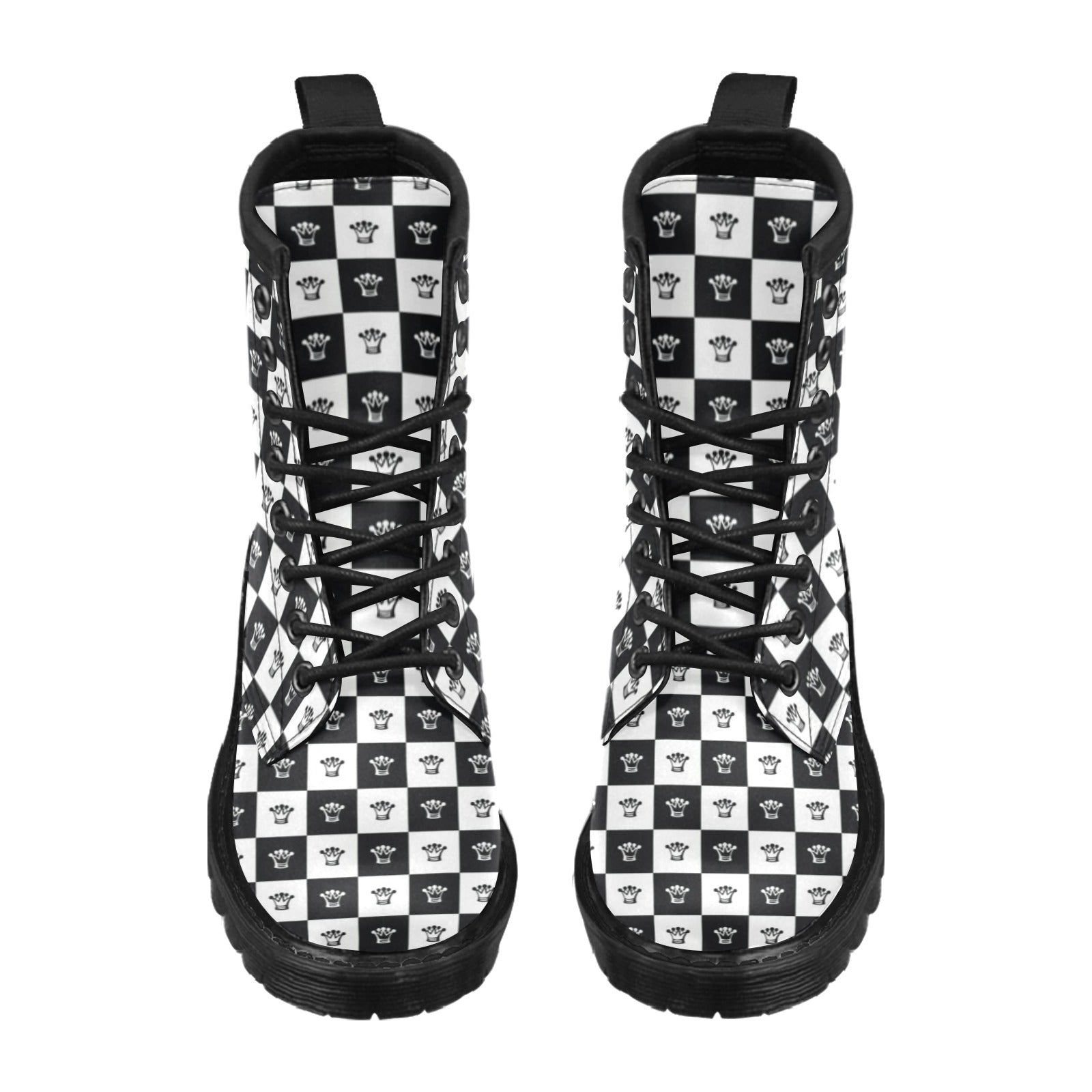 Checkered Flag Crown Pattern Women's Boots Made to Order Item. It is hand-cut and sewn just for your order! This process starts as soon as your order is placed and may have a processing time of 5-9 business days before it ships.