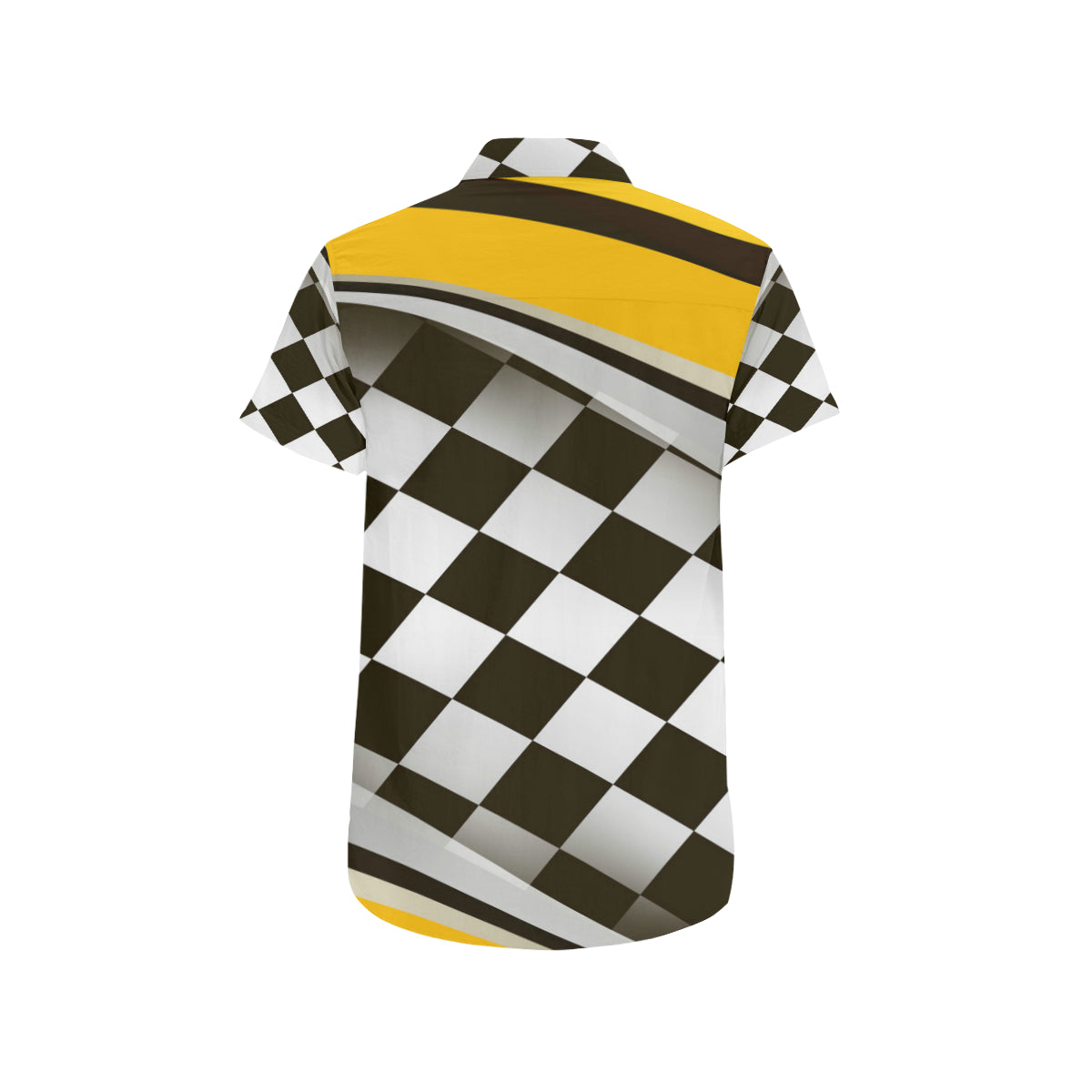 Checkered Flag Racing Style Men's Short Sleeve Button Up Shirt Made to Order Item. It is hand-cut and sewn just for your order! This process starts as soon as your order is placed and may have a processing time of 5-9 business days before it ships.