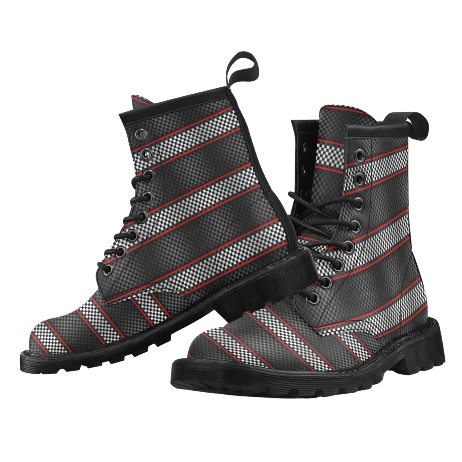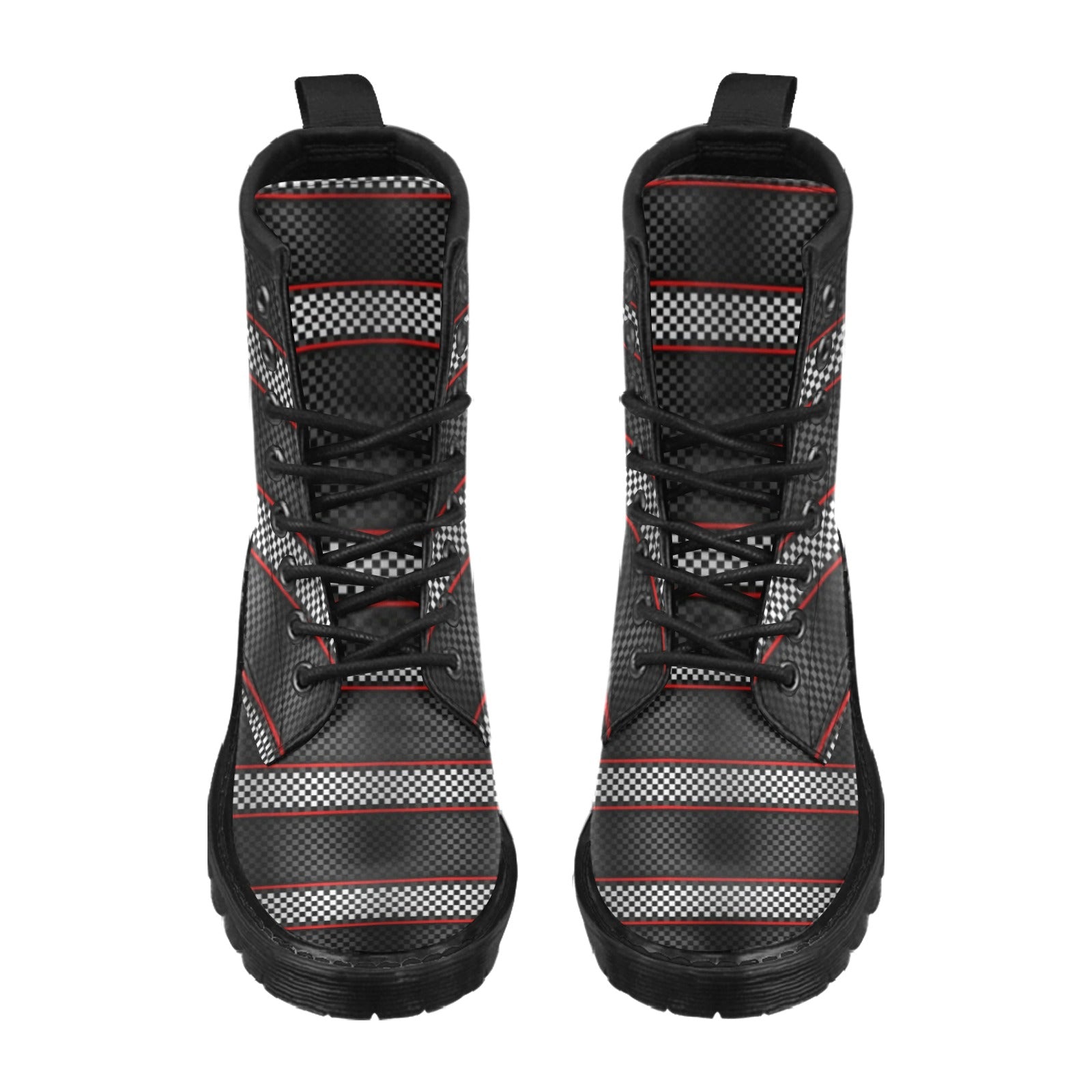 Checkered Flag Red Line Style Women's Boots Made to Order Item. It is hand-cut and sewn just for your order! This process starts as soon as your order is placed and may have a processing time of 5-9 business days before it ships.