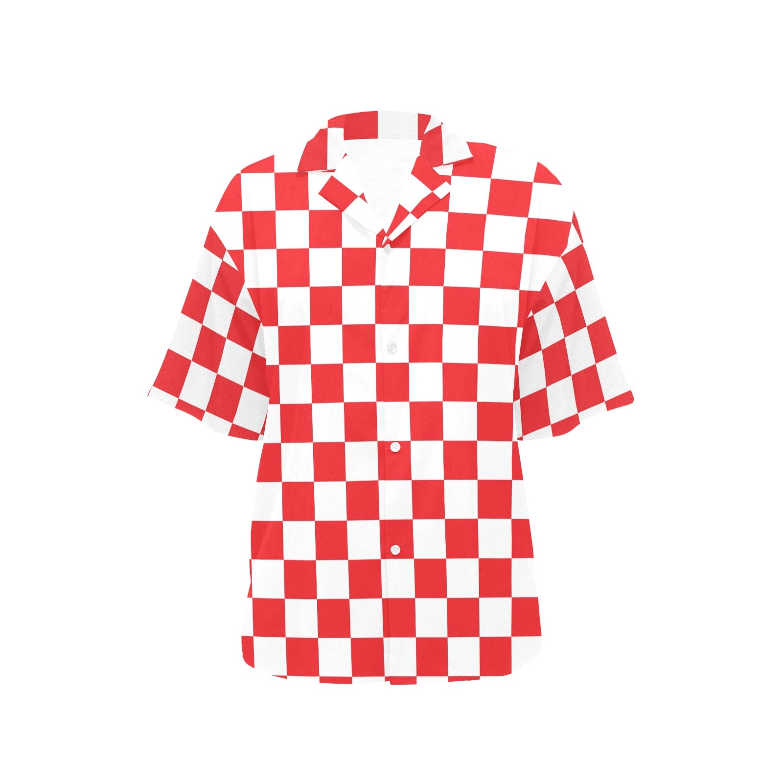 Checkered Red Pattern Print Design 04 Women's Hawaiian Shirt