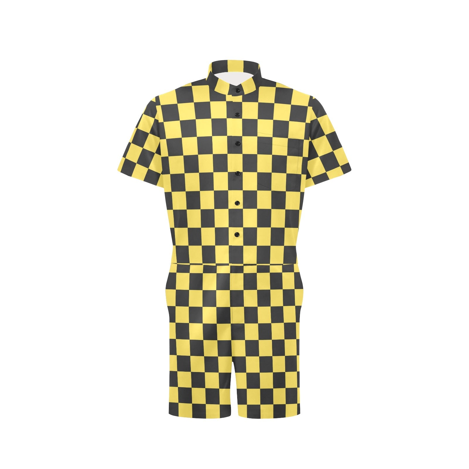 Checkered Yellow Pattern Print Design 03 Men's Romper Made to Order Item. It is hand-cut and sewn just for your order! This process starts as soon as your order is placed and may have a processing time of 5-9 business days before it ships.