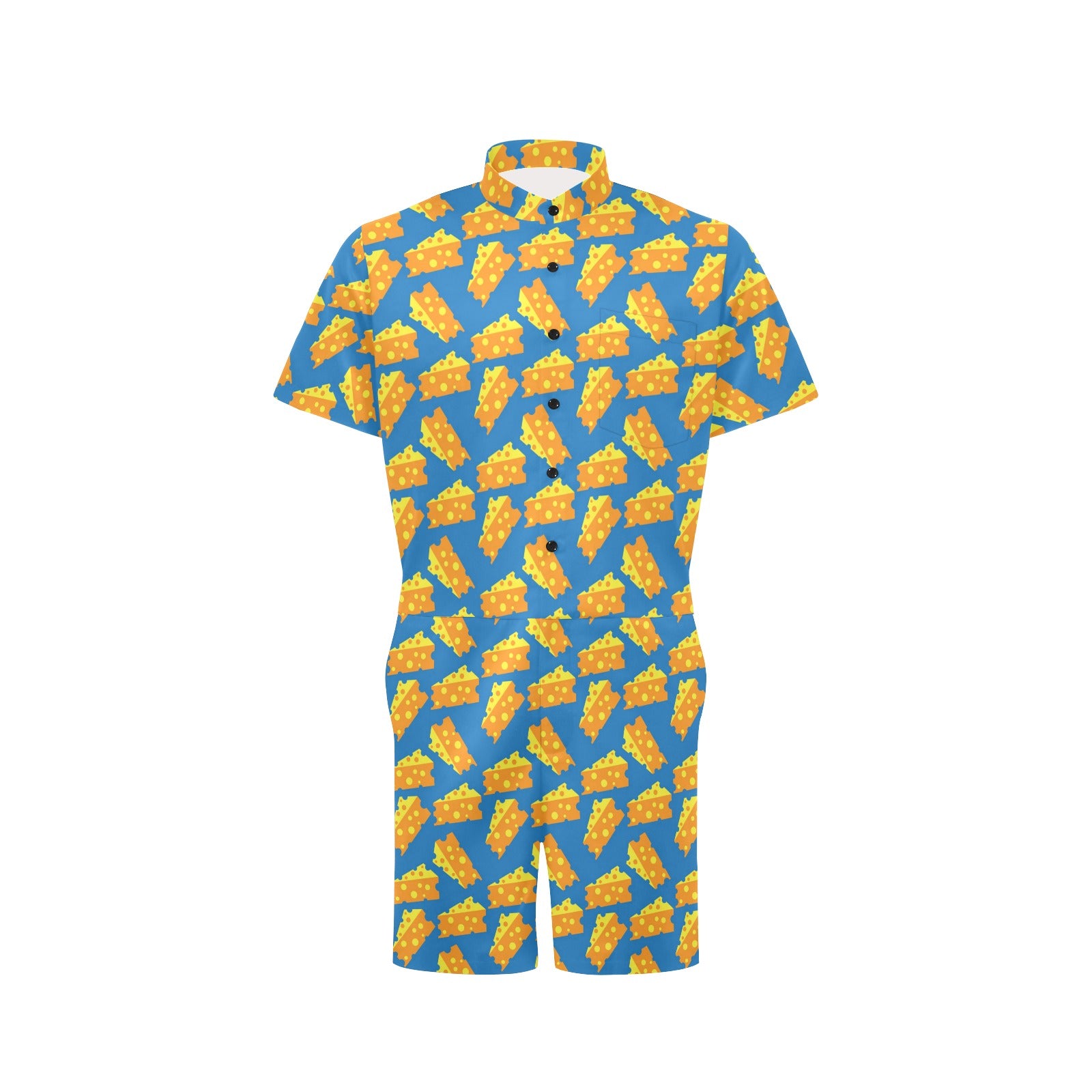 Cheese Pattern Print Design 05 Men's Romper Made to Order Item. It is hand-cut and sewn just for your order! This process starts as soon as your order is placed and may have a processing time of 5-9 business days before it ships.