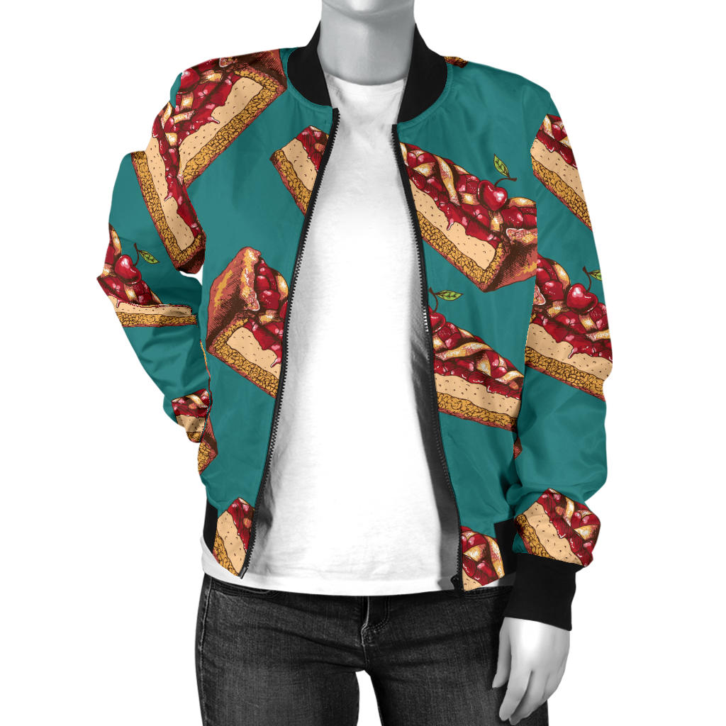 Cheesecake Cherry Pattern Print Design CK03 Women Bomber Jacket
