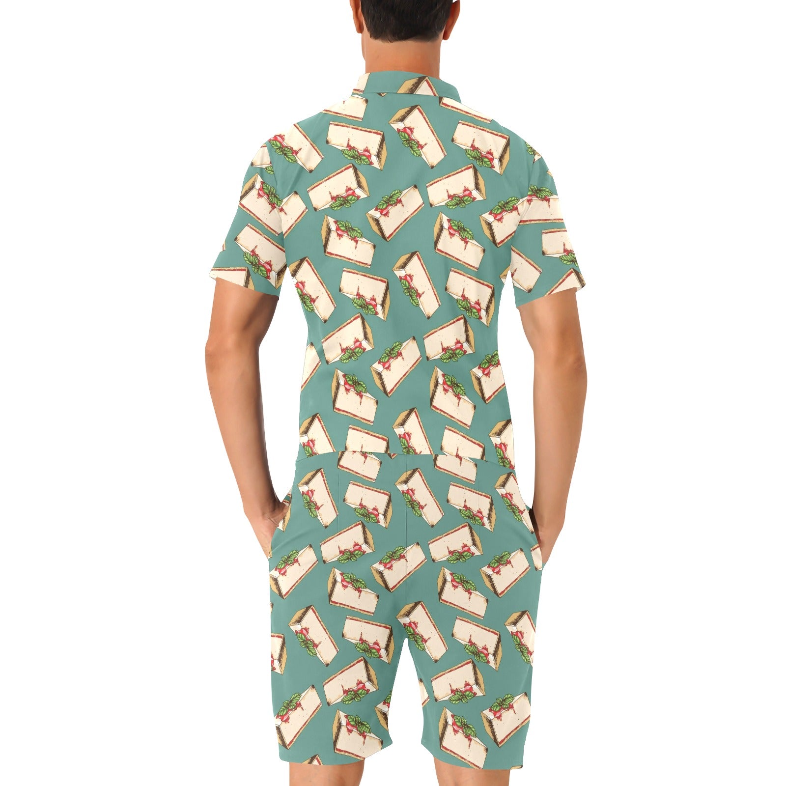 Cheesecake Pattern Print Design CK02 Men's Romper Made to Order Item. It is hand-cut and sewn just for your order! This process starts as soon as your order is placed and may have a processing time of 5-9 business days before it ships.