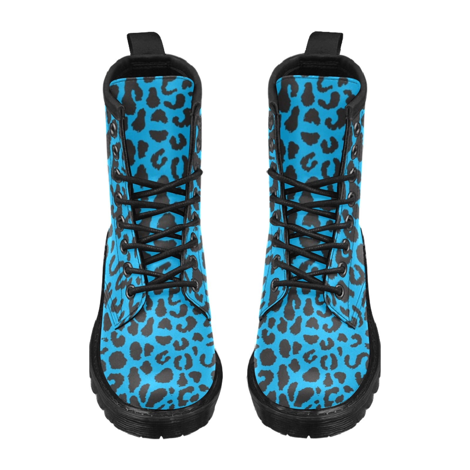 Cheetah Blue Print Pattern Women's Boots Made to Order Item. It is hand-cut and sewn just for your order! This process starts as soon as your order is placed and may have a processing time of 5-9 business days before it ships.