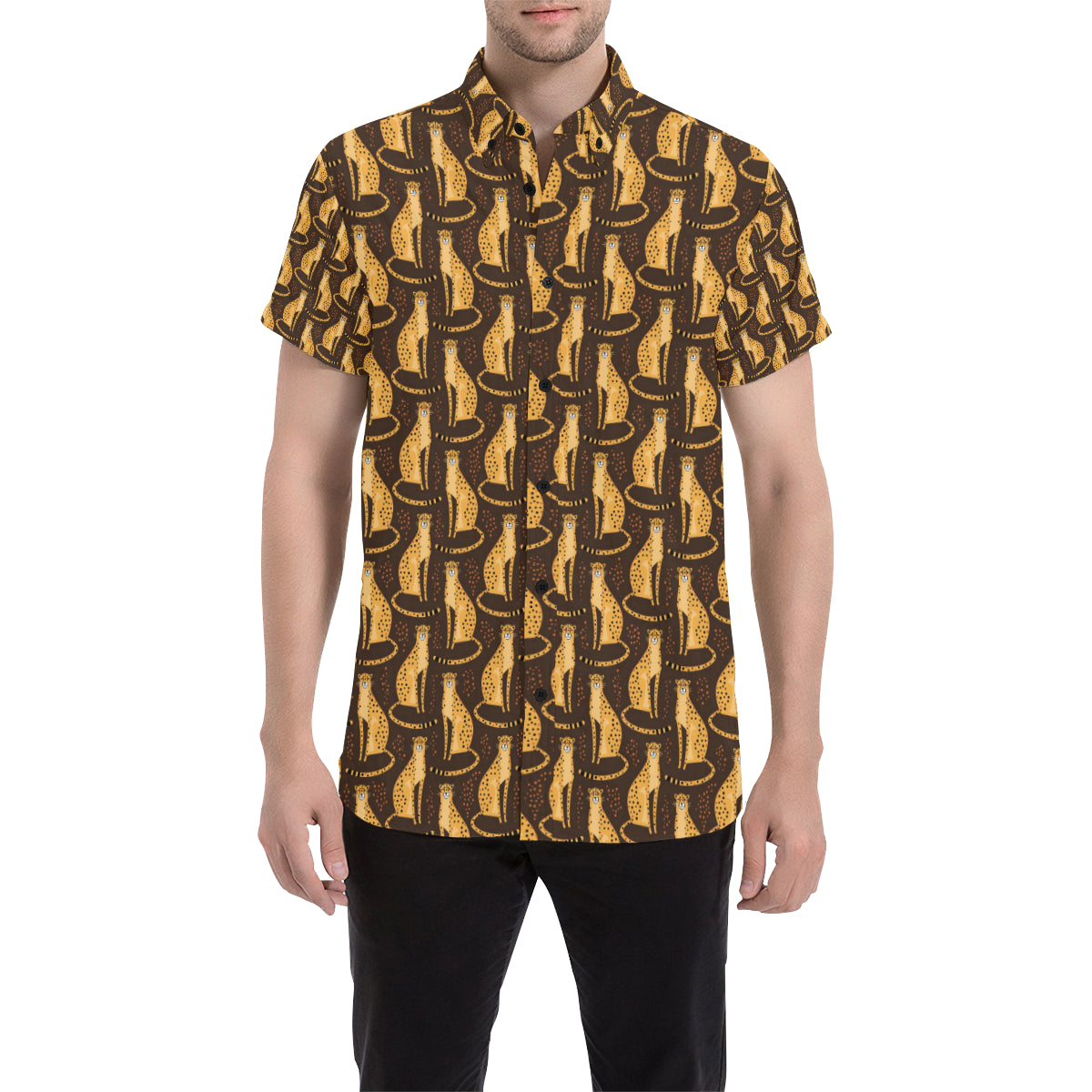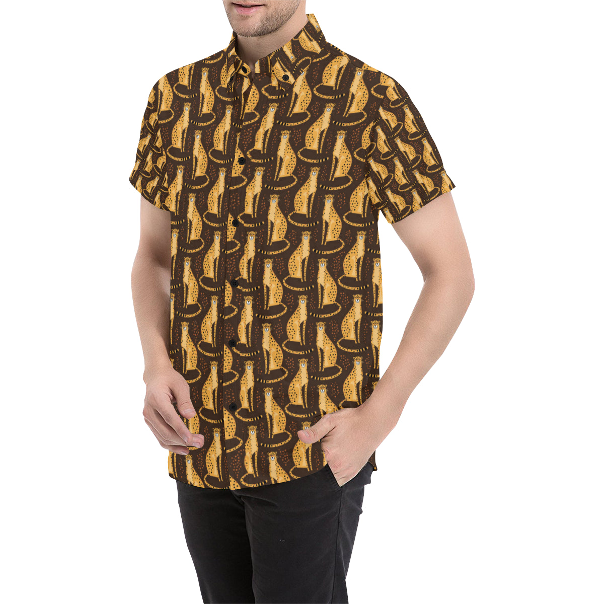 Cheetah Pattern Print Design 03 Men's Short Sleeve Button Up Shirt Made to Order Item. It is hand-cut and sewn just for your order! This process starts as soon as your order is placed and may have a processing time of 5-9 business days before it ships.