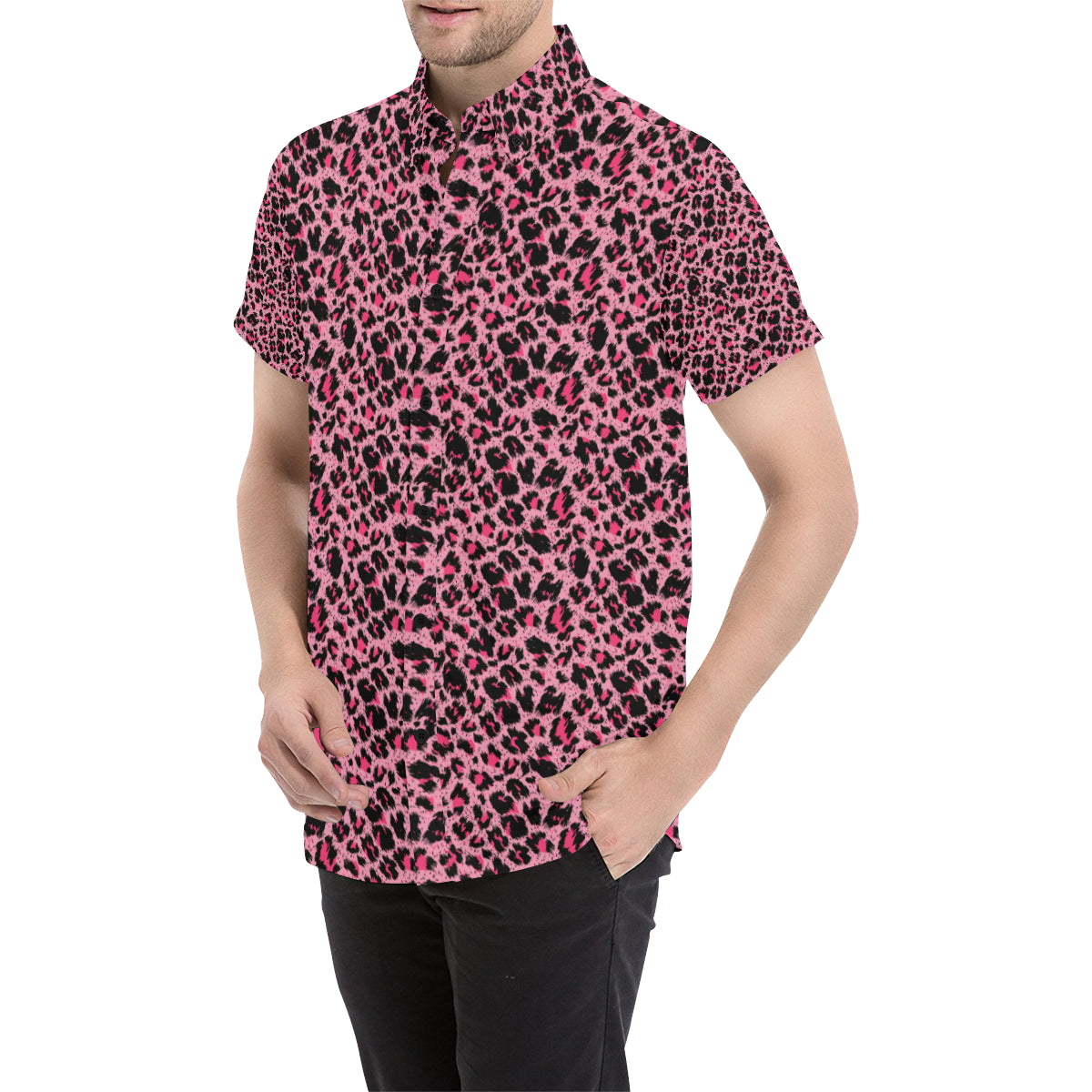 Cheetah Pink Pattern Print Design 01 Men's Short Sleeve Button Up Shirt Made to Order Item. It is hand-cut and sewn just for your order! This process starts as soon as your order is placed and may have a processing time of 5-9 business days before it ships.
