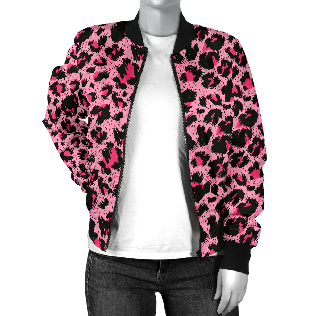 Cheetah Pink Pattern Print Design 01 Women's Bomber Jacket