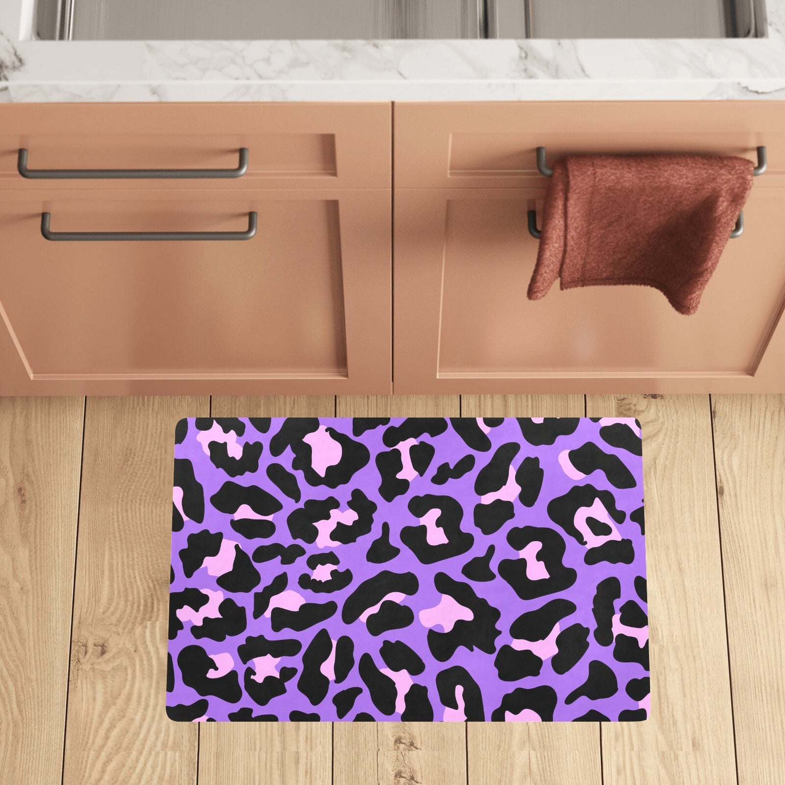 Cheetah Purple Neon Print Pattern Kitchen Mat