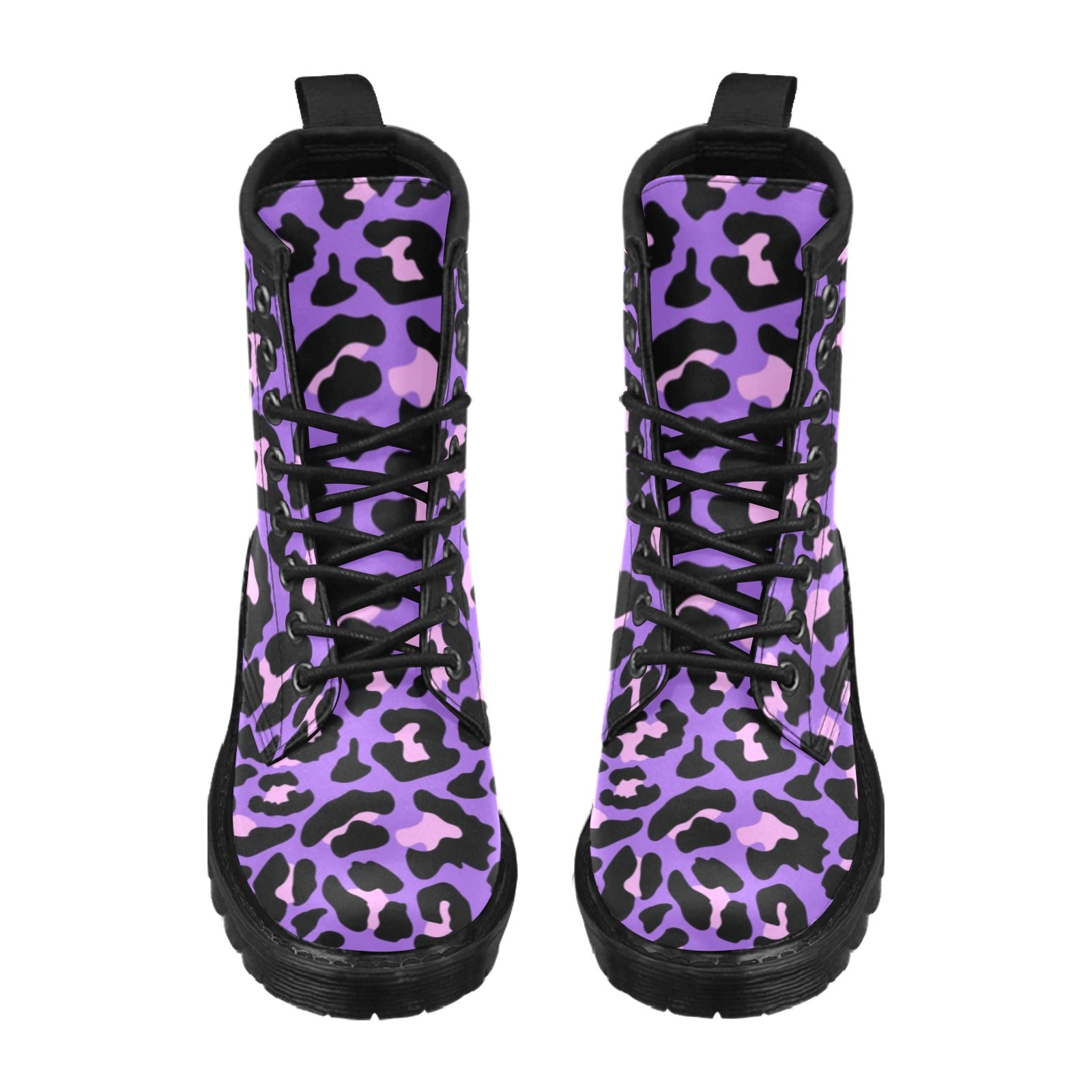 Cheetah Purple Neon Print Pattern Women's Boots Made to Order Item. It is hand-cut and sewn just for your order! This process starts as soon as your order is placed and may have a processing time of 5-9 business days before it ships.