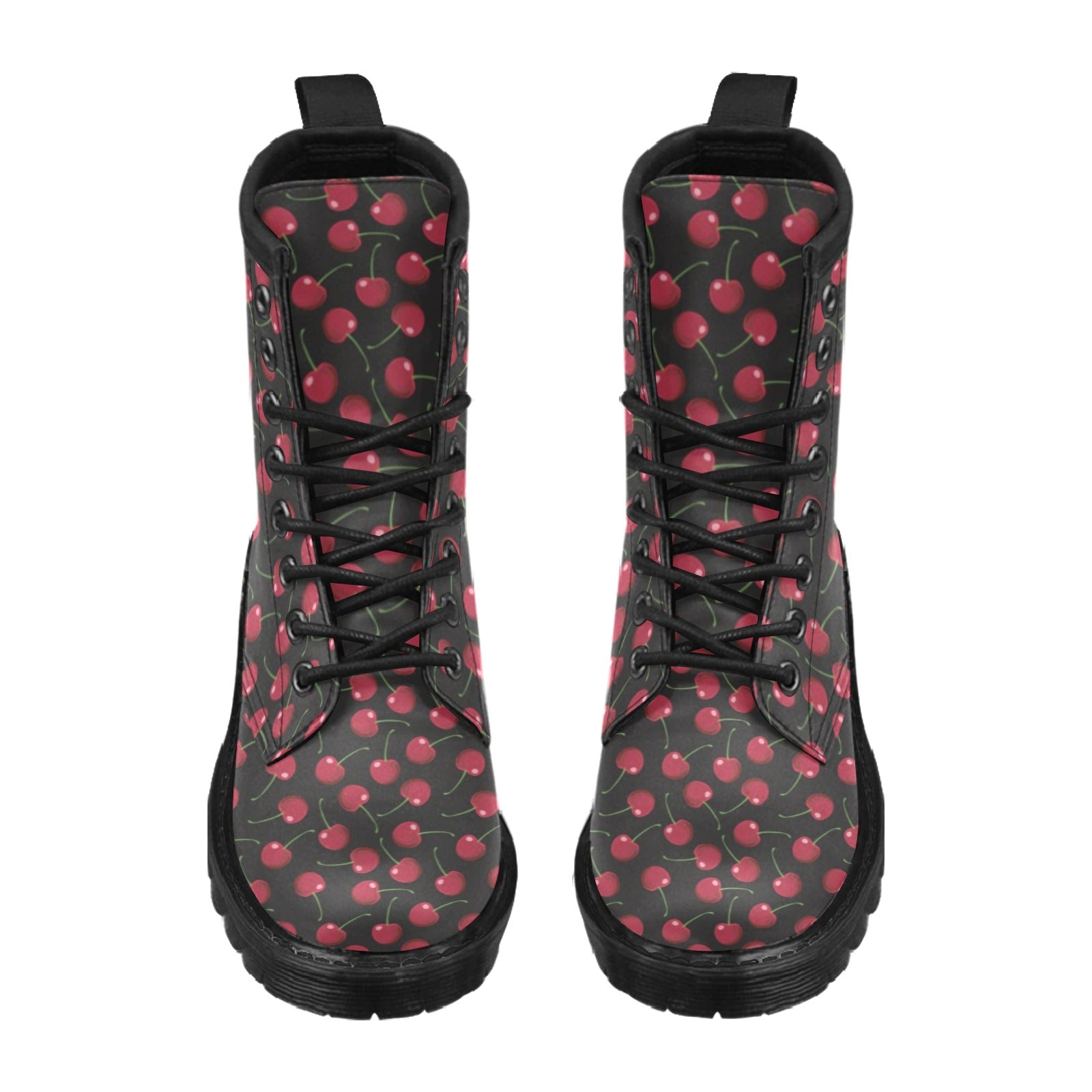 Cherry Black Background Women's Boots Made to Order Item. It is hand-cut and sewn just for your order! This process starts as soon as your order is placed and may have a processing time of 5-9 business days before it ships.