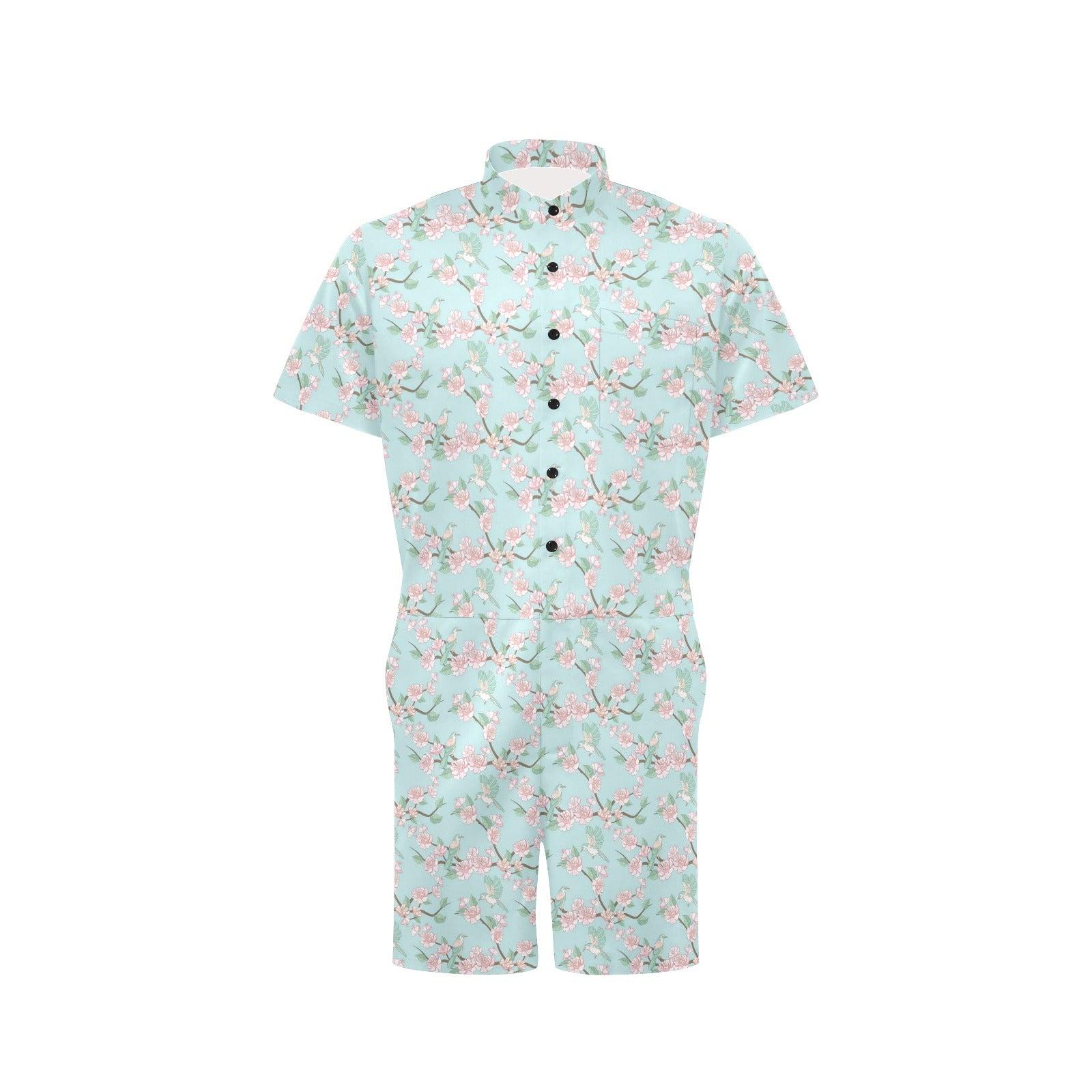 Cherry Blossom Pattern Print Design 02 Men's Romper Made to Order Item. It is hand-cut and sewn just for your order! This process starts as soon as your order is placed and may have a processing time of 5-9 business days before it ships.