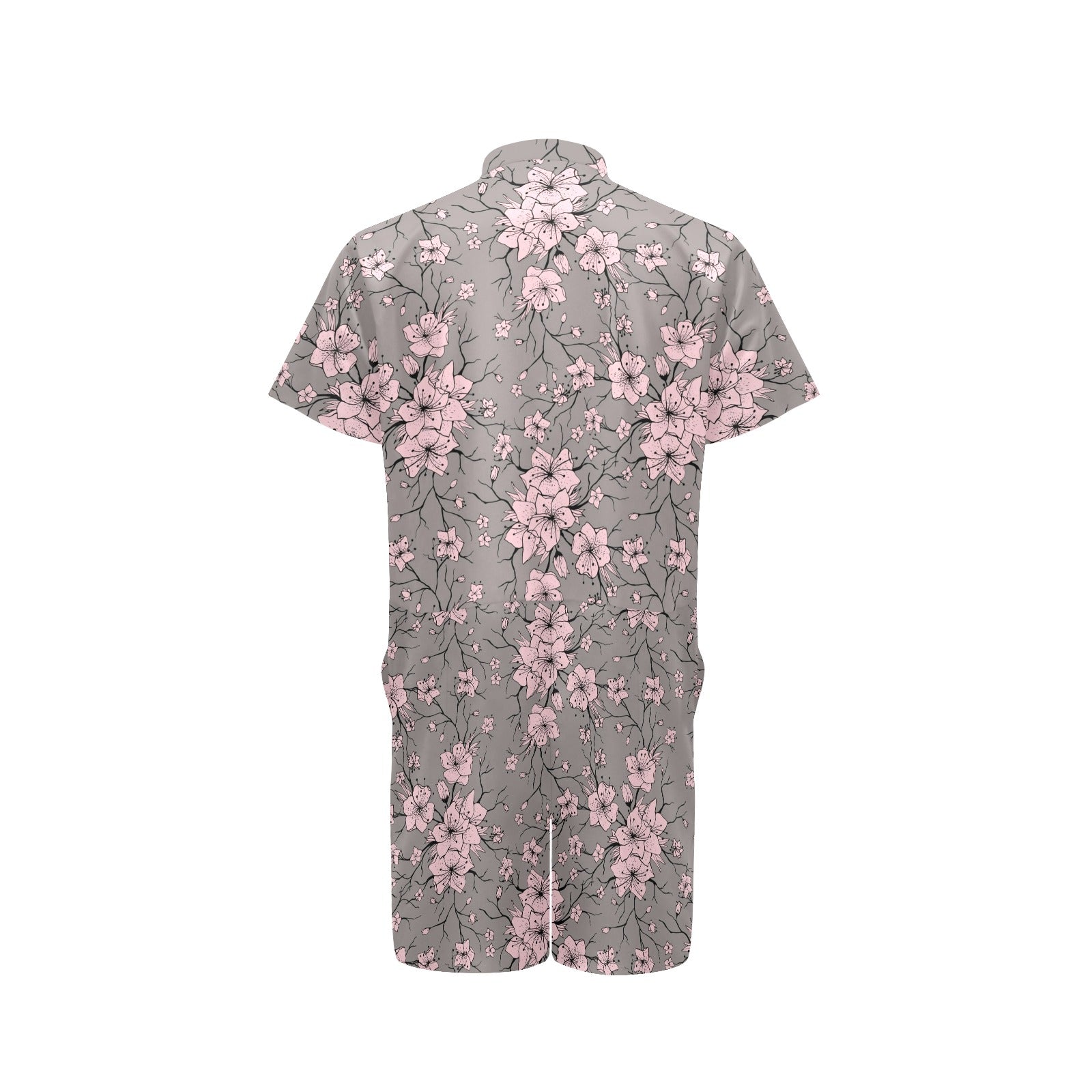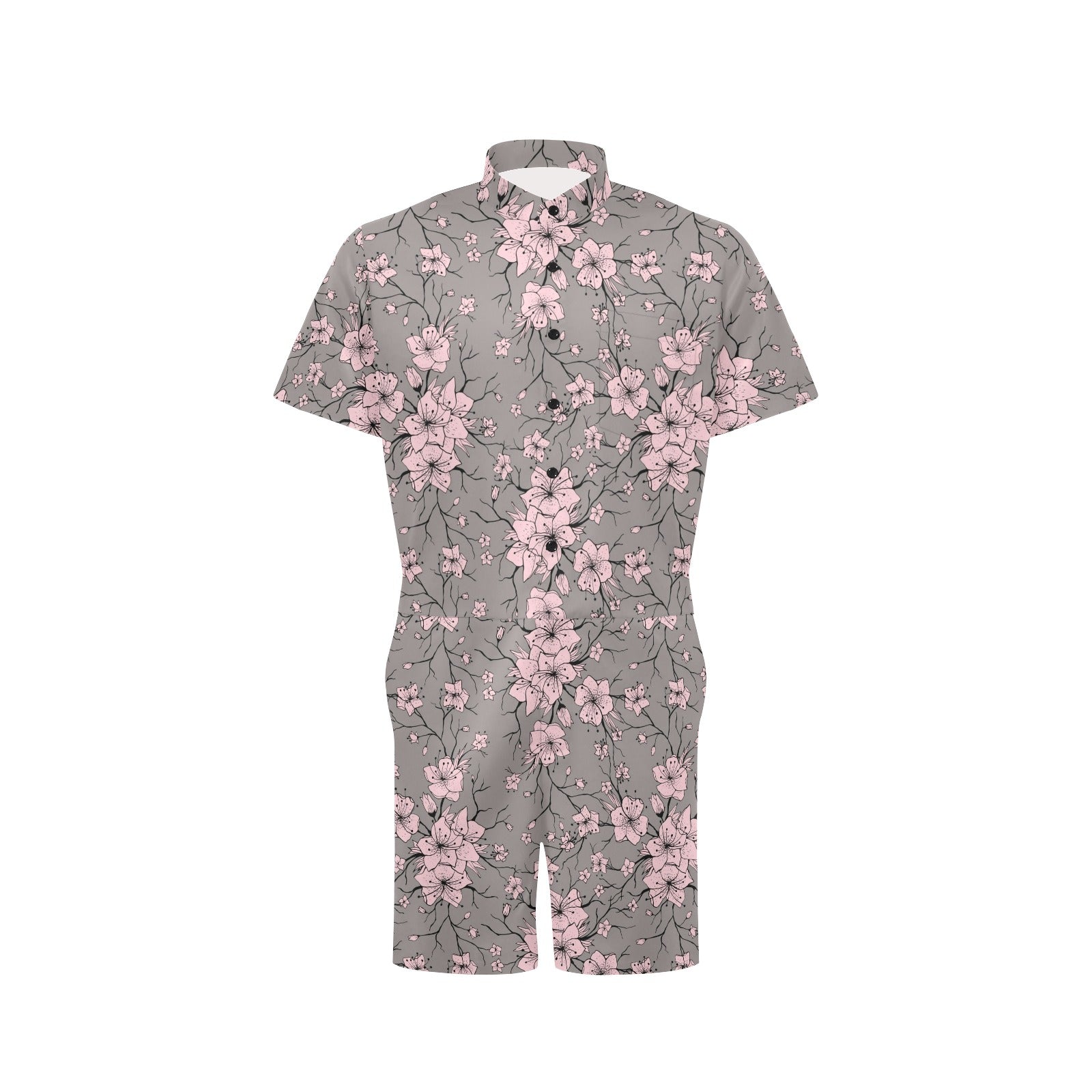 Cherry Blossom Pattern Print Design CB05 Men's Romper Made to Order Item. It is hand-cut and sewn just for your order! This process starts as soon as your order is placed and may have a processing time of 5-9 business days before it ships.