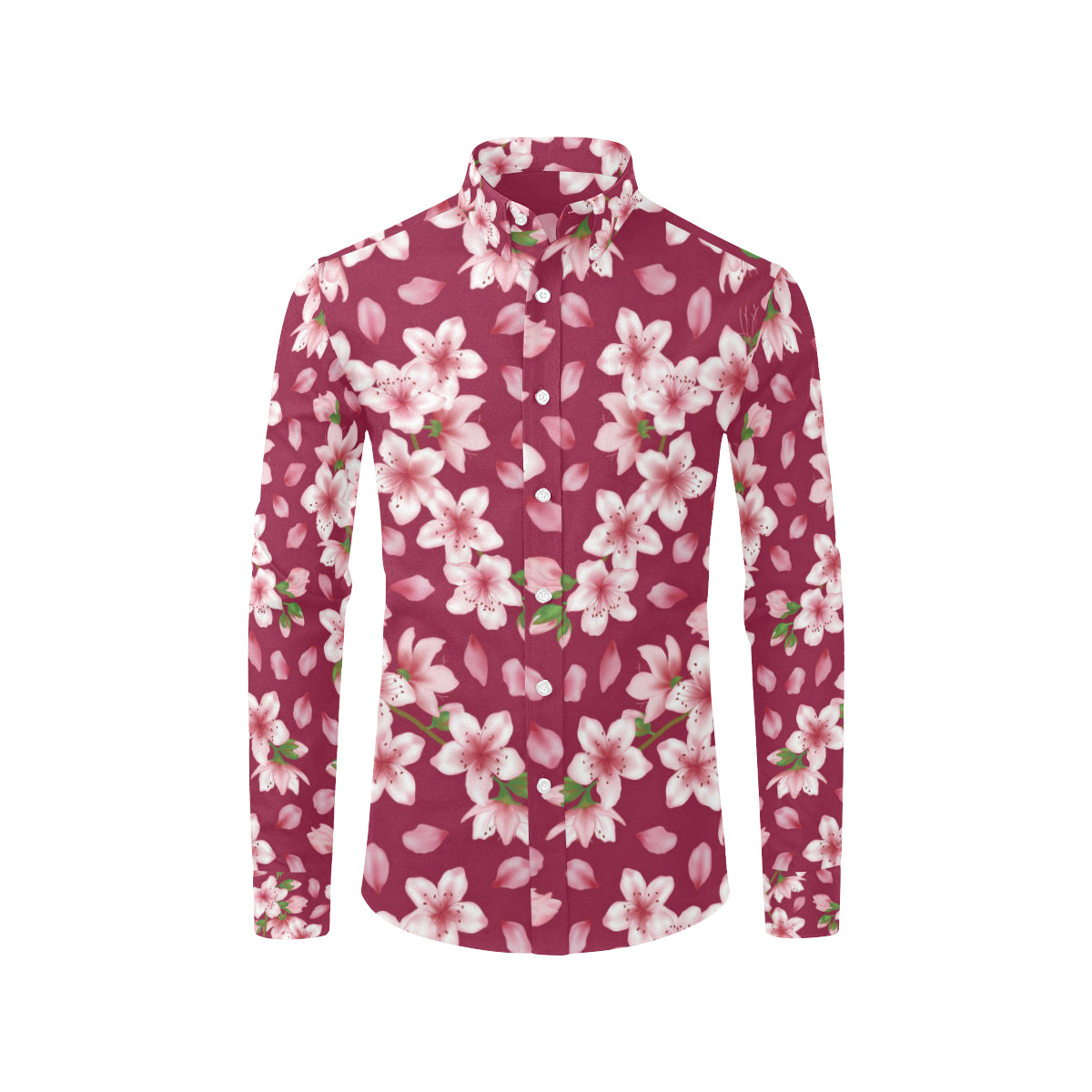 Cherry Blossom Pattern Print Design CB06 Men's Long Sleeve Shirt