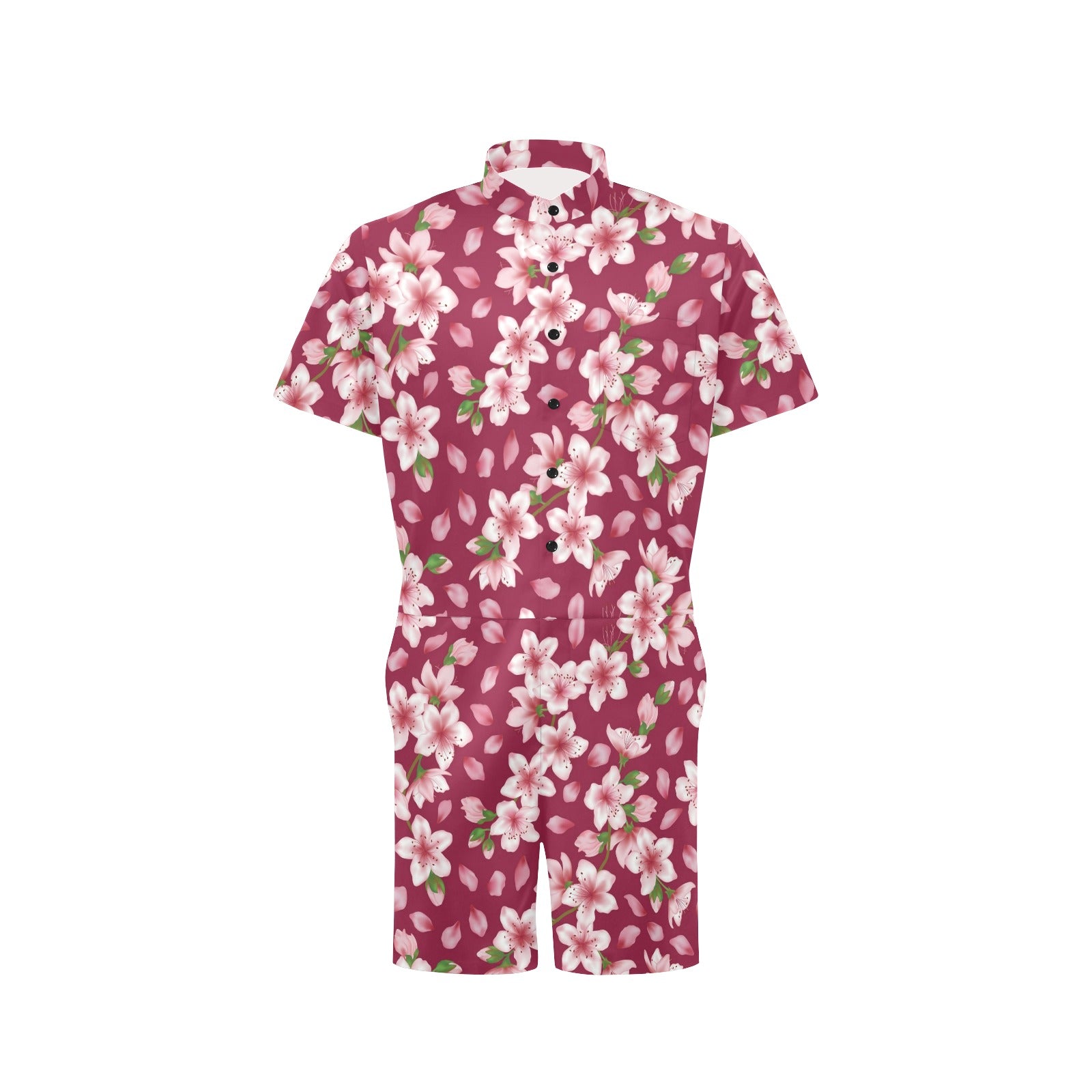 Cherry Blossom Pattern Print Design CB06 Men's Romper Made to Order Item. It is hand-cut and sewn just for your order! This process starts as soon as your order is placed and may have a processing time of 5-9 business days before it ships.