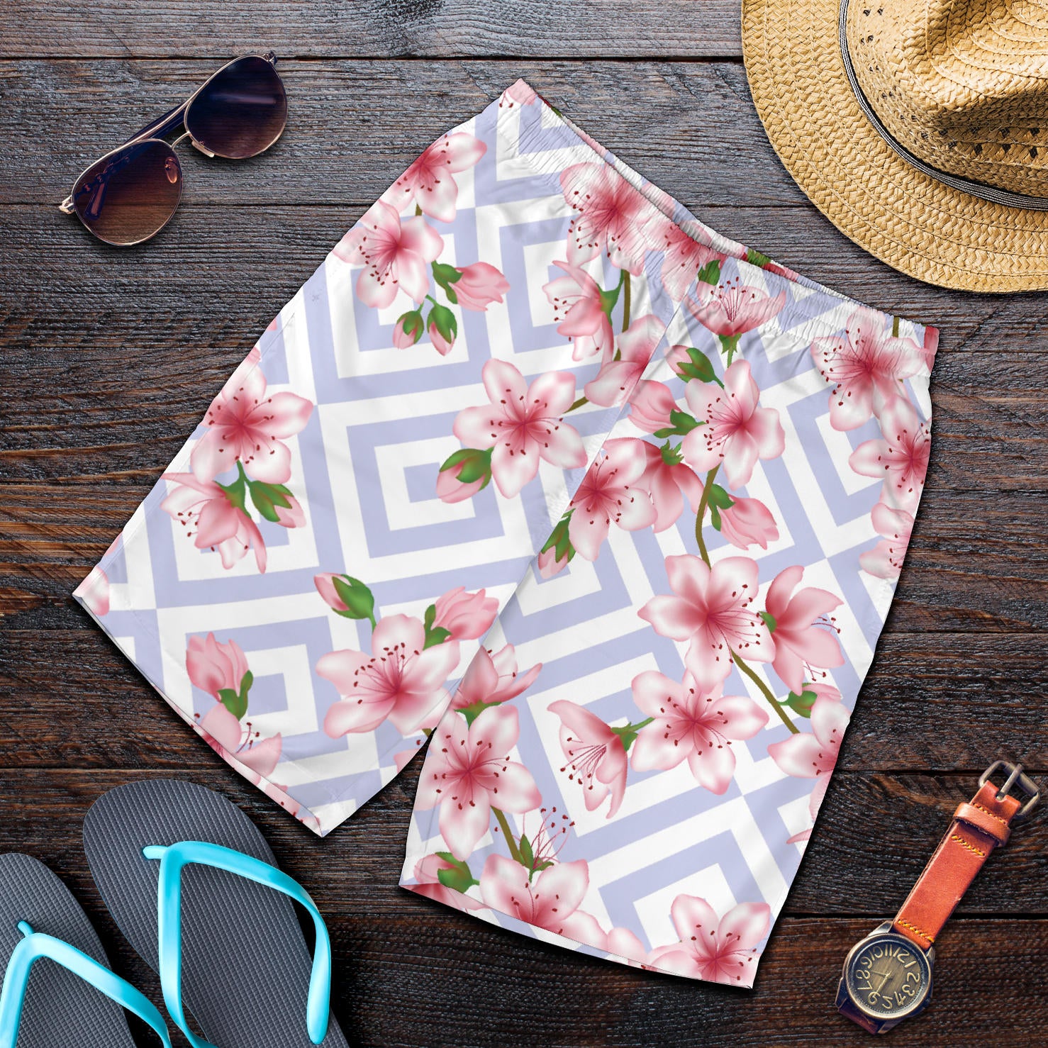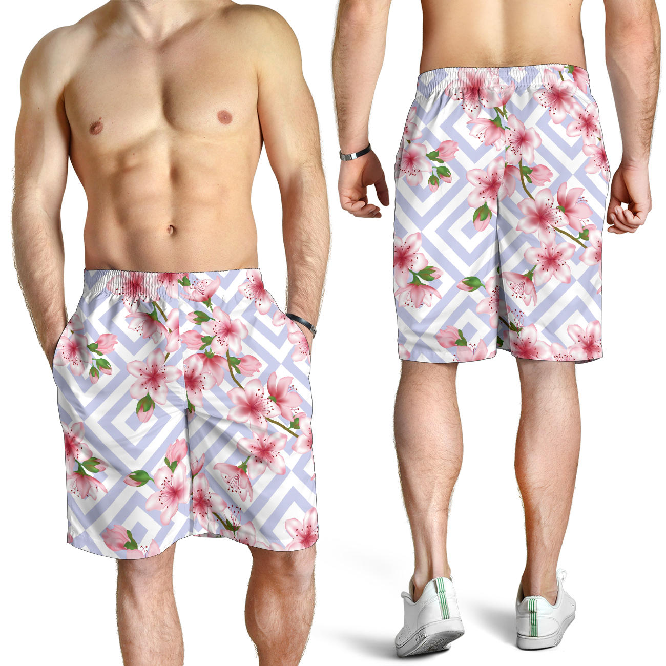 Cherry Blossom Pattern Print Design CB07 Mens Shorts Made to Order Item. It is hand-cut and sewn just for your order! This process starts as soon as your order is placed and may have a processing time of 5-9 business days before it ships.