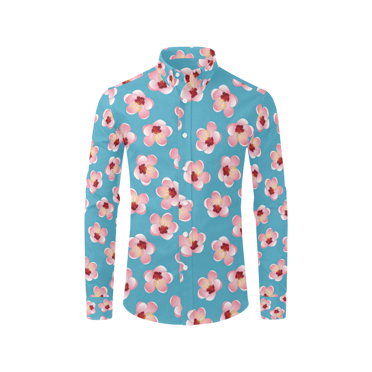 Cherry Blossom Pattern Print Design CB09 Men's Long Sleeve Shirt