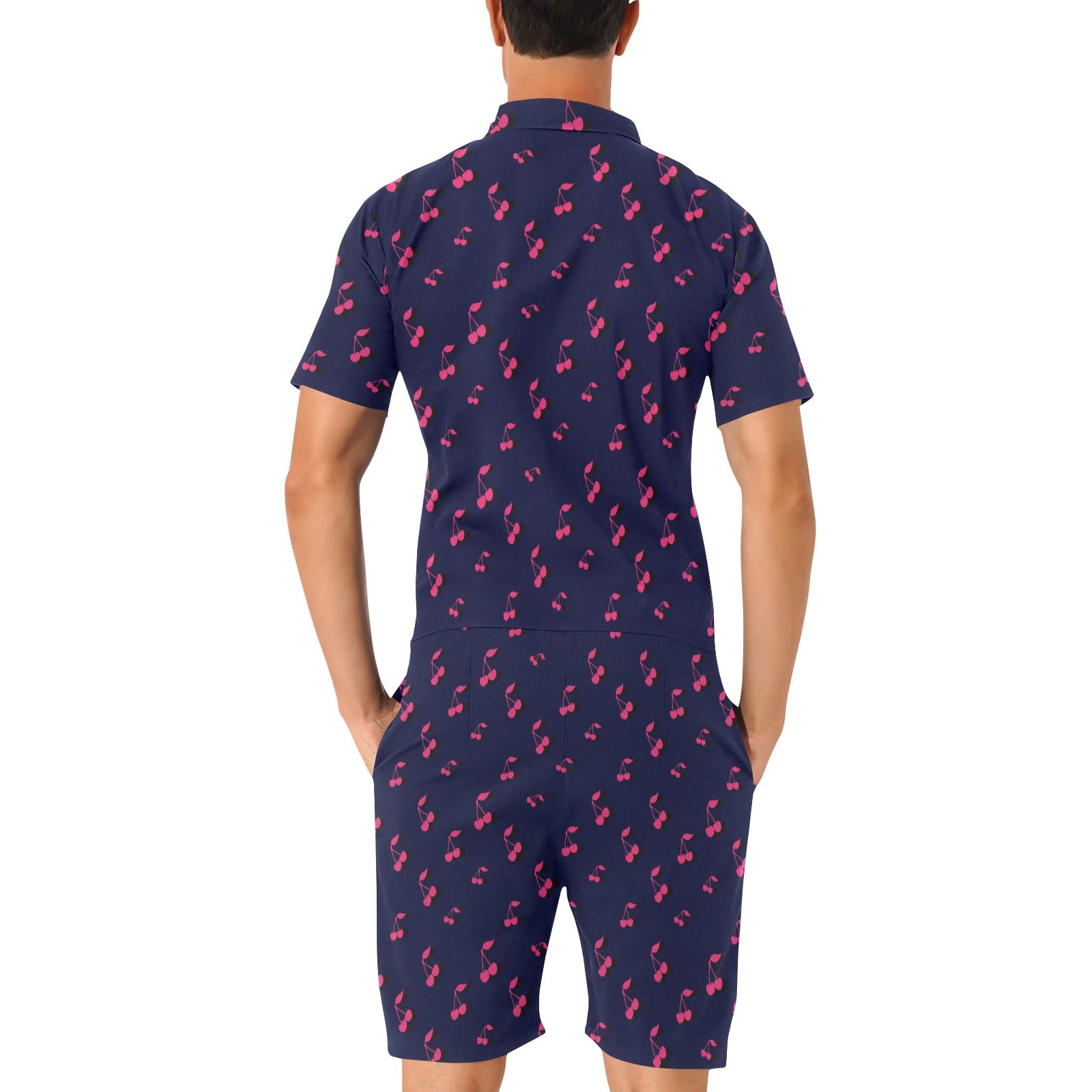 Cherry Pattern Print Design 02 Men's Romper Made to Order Item. It is hand-cut and sewn just for your order! This process starts as soon as your order is placed and may have a processing time of 5-9 business days before it ships.