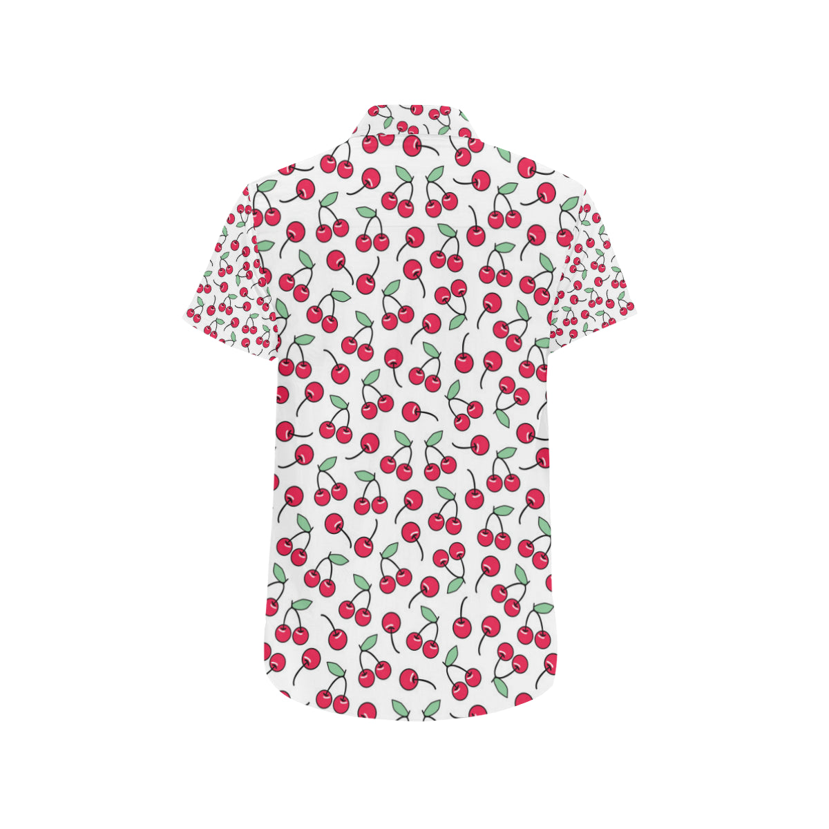 Cherry Pattern Print Design 03 Men's Short Sleeve Button Up Shirt Made to Order Item. It is hand-cut and sewn just for your order! This process starts as soon as your order is placed and may have a processing time of 5-9 business days before it ships.