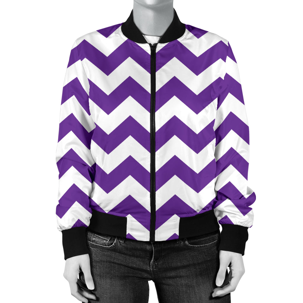 Chevron Purple Pattern Print Design 03 Women's Bomber Jacket
